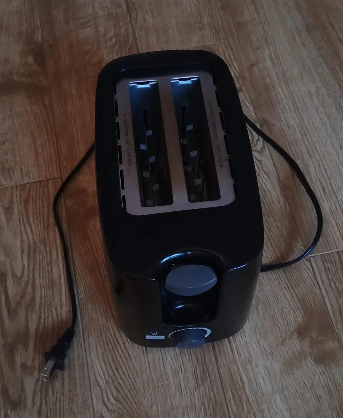 Selling a black toaster in good condition. It's a standard two-slice toaster perfect for your morning toast or bagels. Ready to go to a new home!