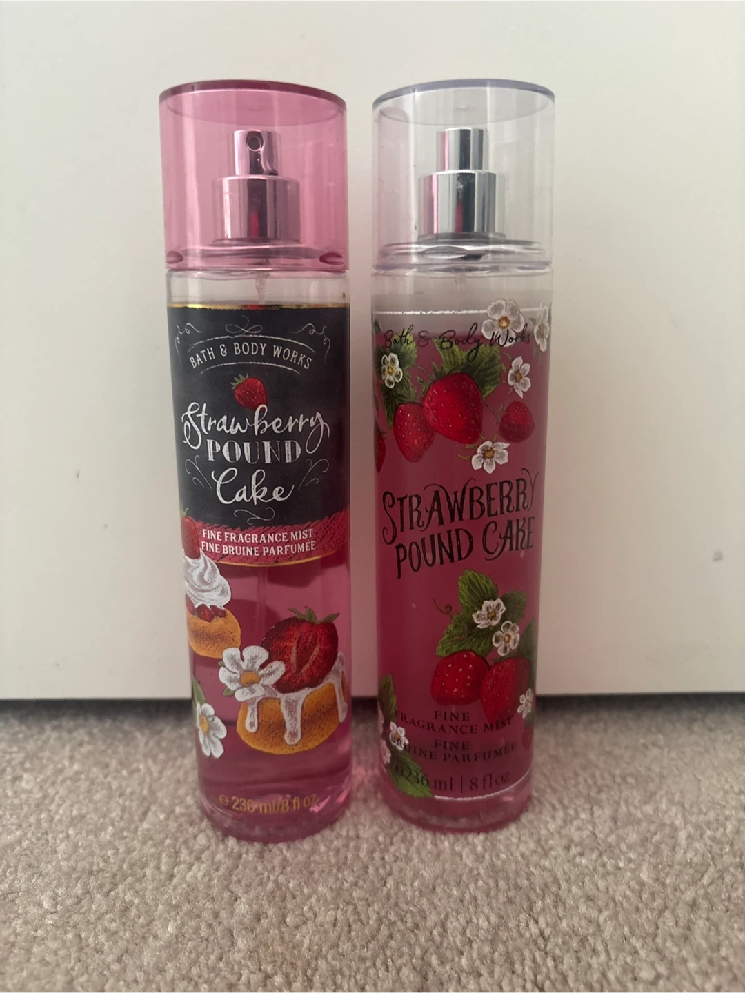 Selling two bottles of Bath & Body Works Fine Fragrance Mist in Strawberry Pound Cake! Both are 236 ml / 8 fl oz