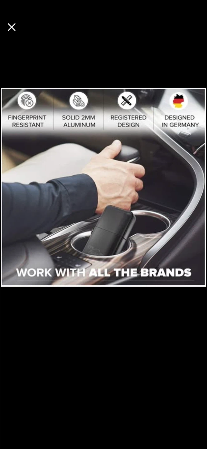 Selling a Vonetti Premium RFID car key protector case in solid aluminum with black leather. It's fingerprint resistant and made of solid 2mm aluminum. The case is designed in Germany and padded with fine leather imitation. Dimensions are 9cm x 5cm x 3cm