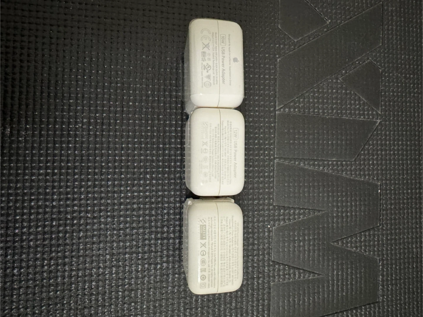 Selling three Apple genuine 10W USB Power Adapters. They are in great condition and ready to use! Perfect for charging your iPhone or other USB-compatible devices