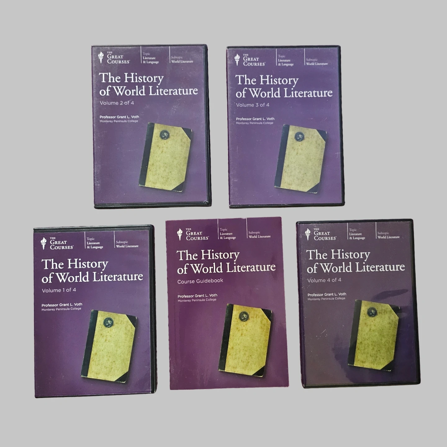 Whole set of 'The History of World Literature' from The Great Courses series! This includes the Course Guidebook and Volumes 1-4. Perfect for anyone interested in exploring world literature with Professor Grant L. Voth.