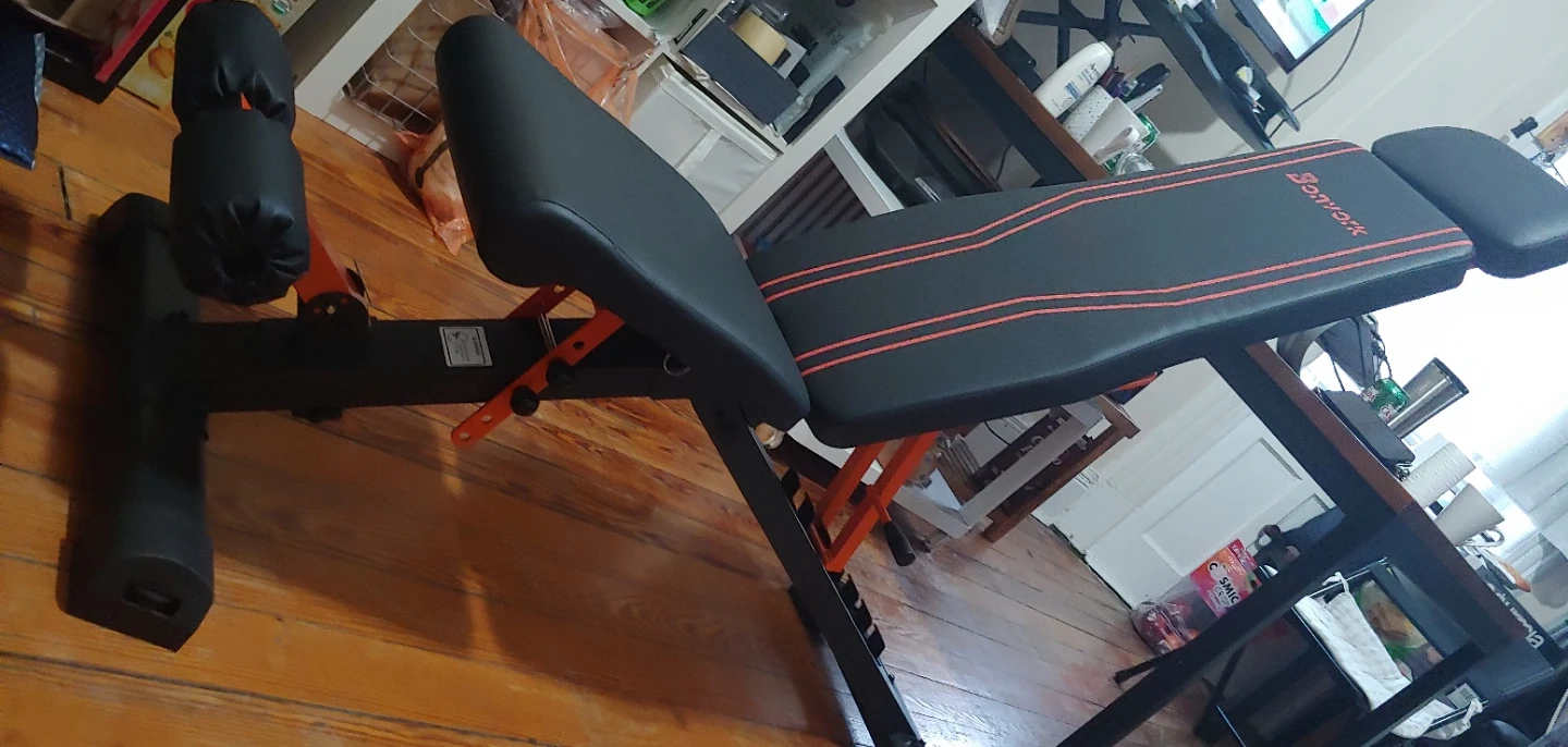 Selling a Sonworx adjustable weight bench! It's in great condition and ready for your home gym setup. Perfect for various exercises and adjustable to your needs