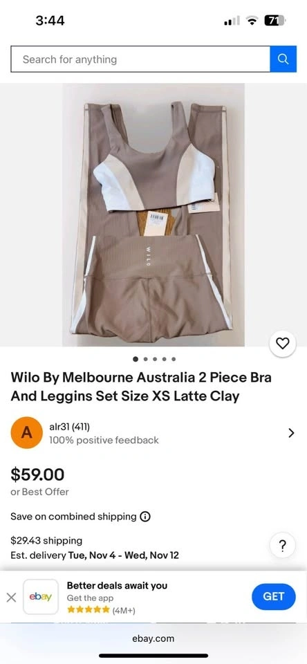 2 piece workout bra and leggings by Wilo of Australia size M
