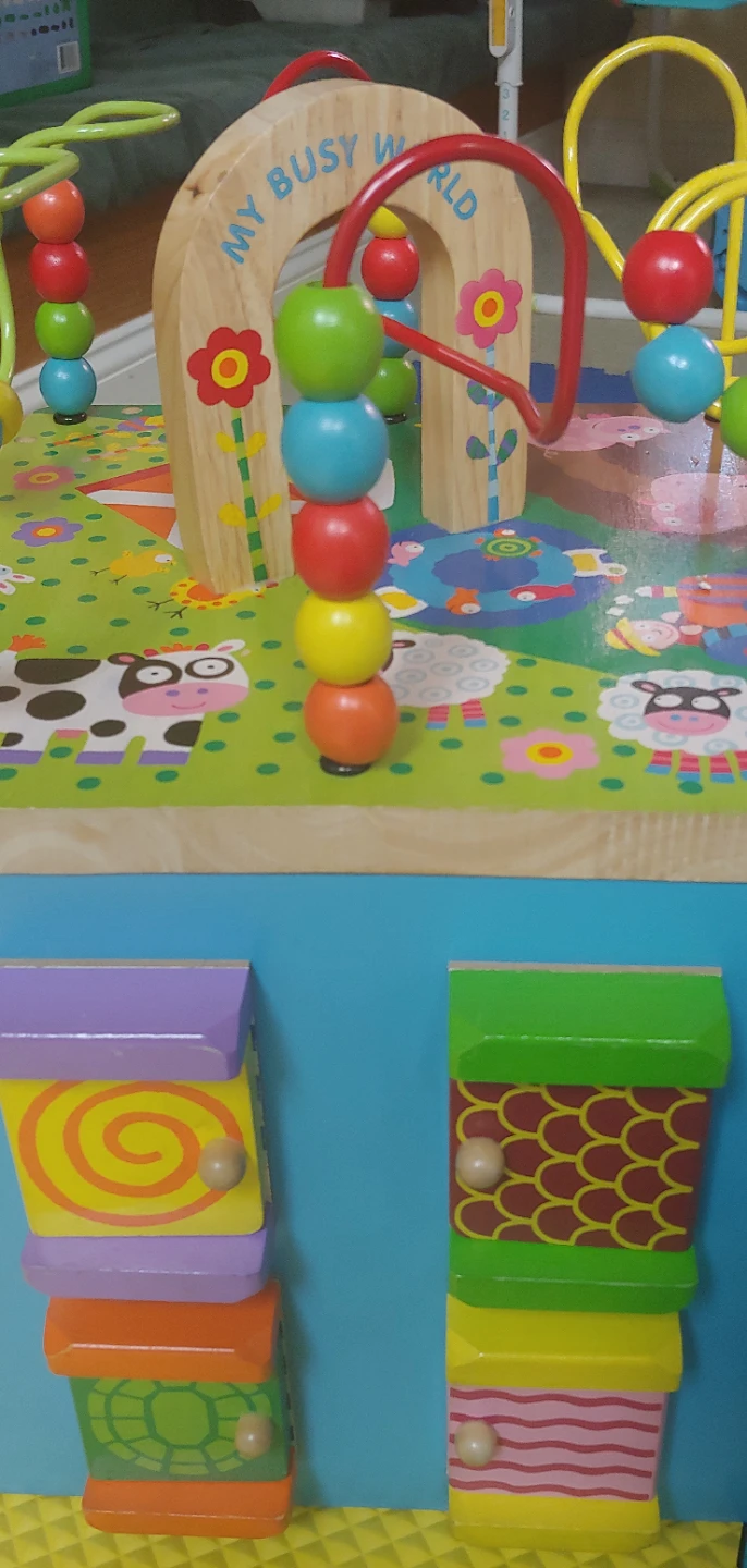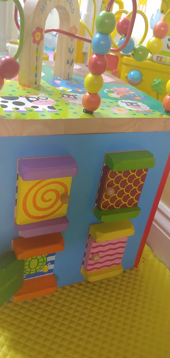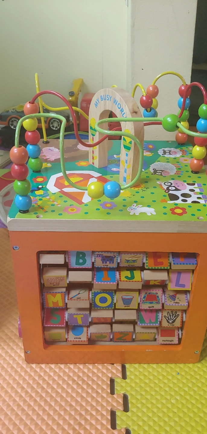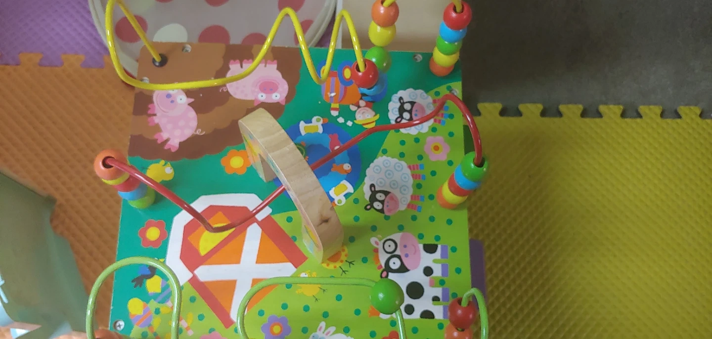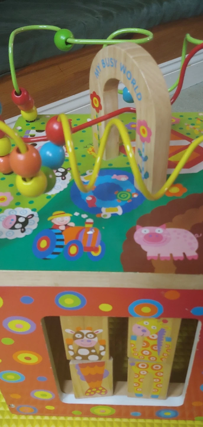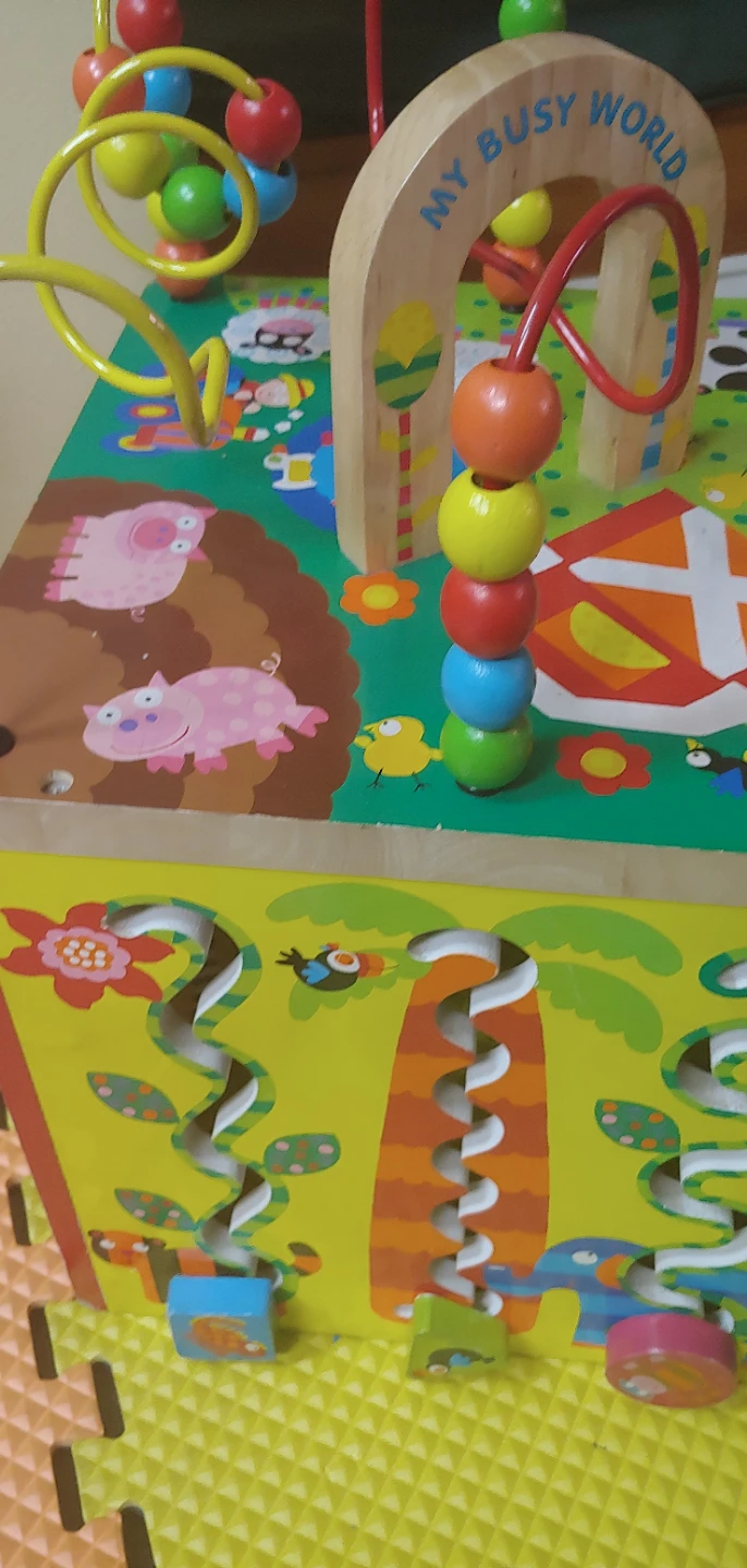 Selling a gently used activity cube from My Busy World! This cube is packed with fun activities to keep your little one entertained. It features a bead maze, shape sorter, and colorful animal illustrations. Great for developing fine motor skills and problem-solving abilities!