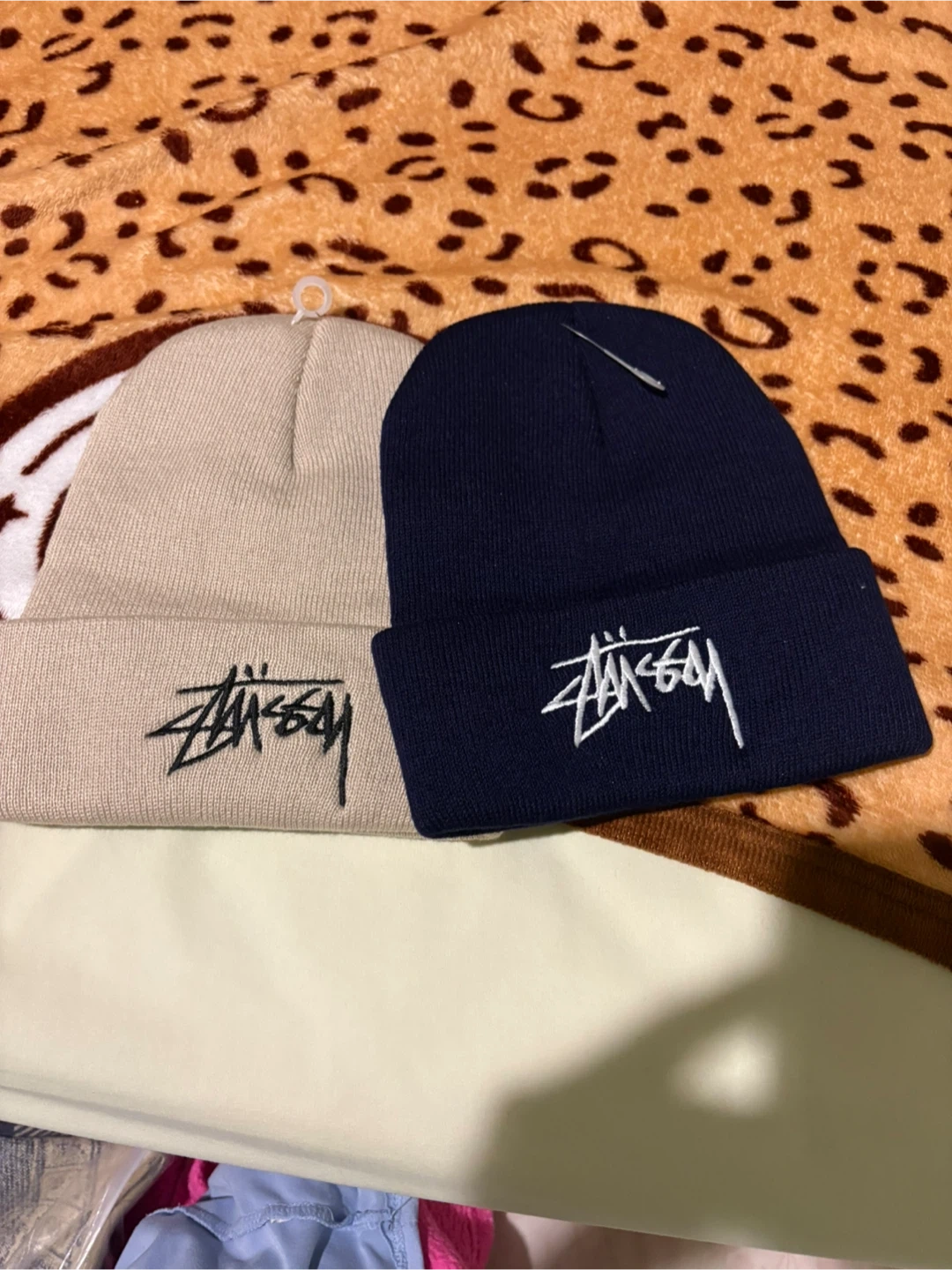 Stussy Beanies - Beige and Navy