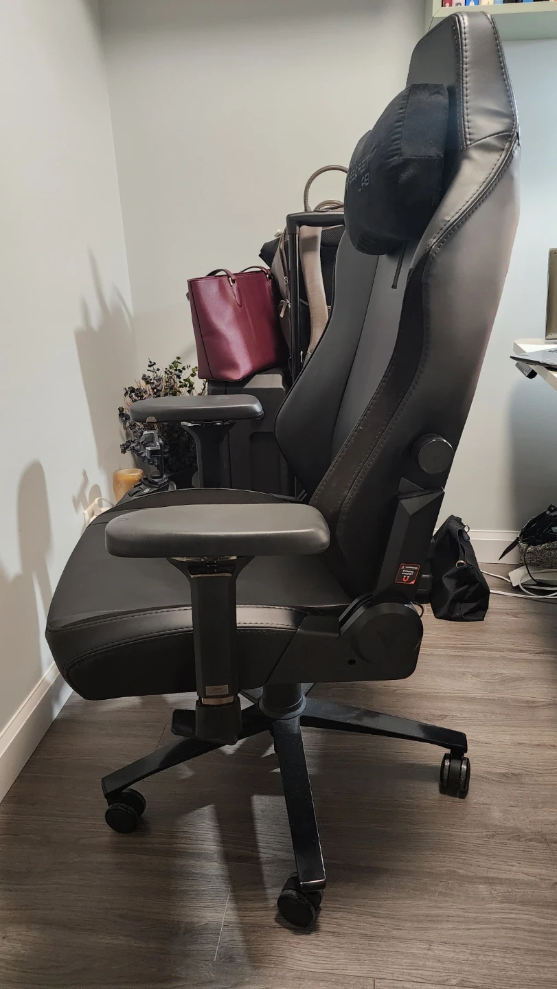 It's in pristine condition and super comfy for long gaming sessions or working from home. The chair has a sleek design. It is black on black: NEO Hybrid Leatherette.
