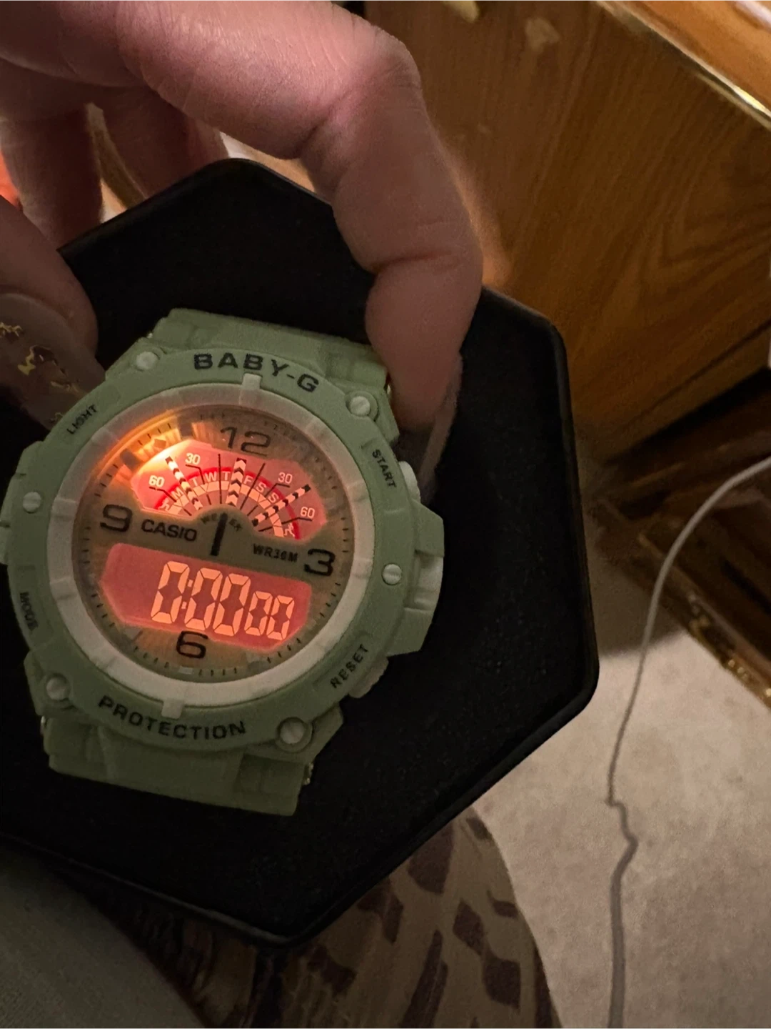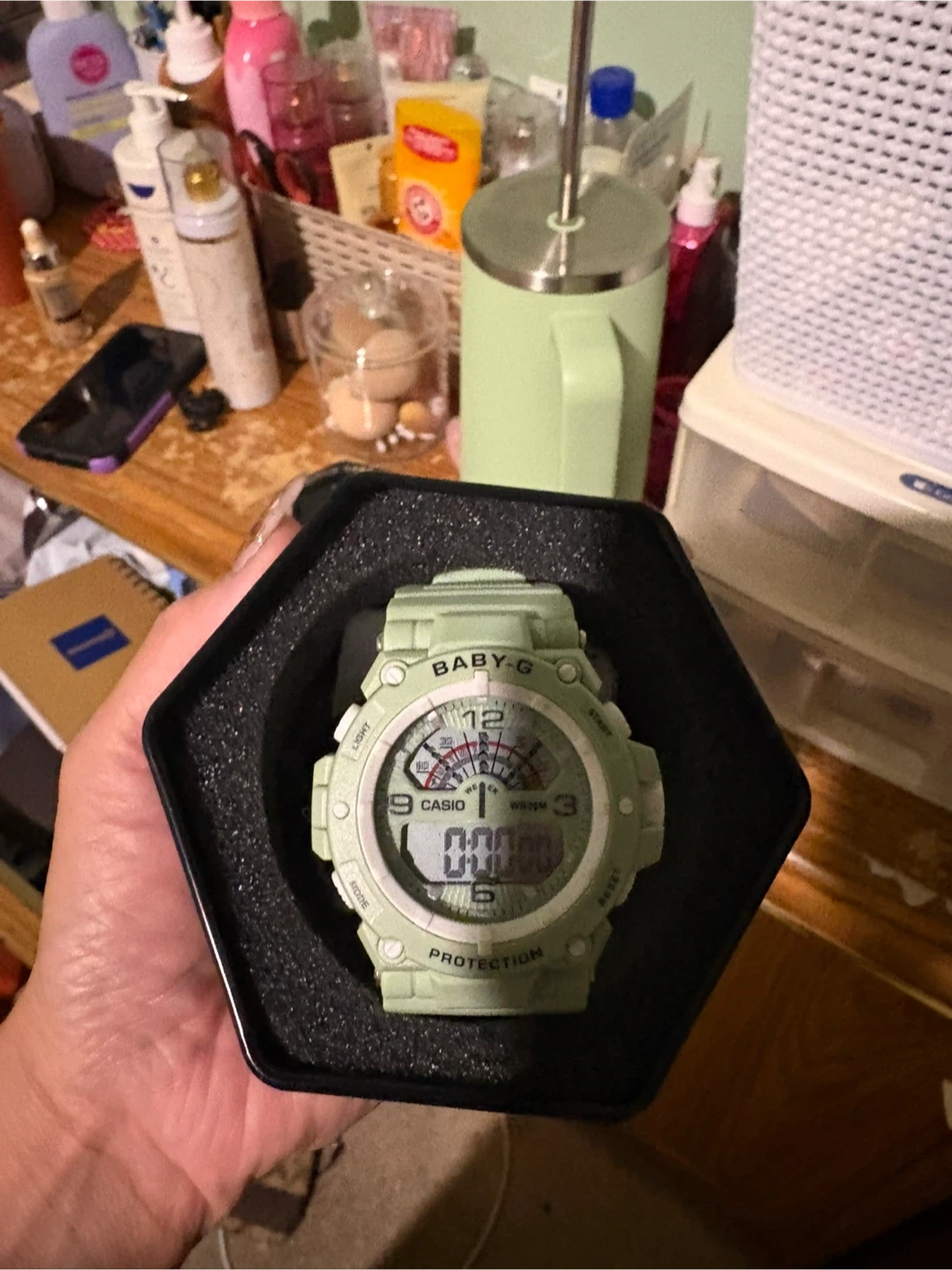 Selling a Baby-G Casio watch in a lovely mint green colour! It comes with its original box. This watch is perfect for adding a pop of colour to your everyday look and is in great condition. Feel free to reach out if you have any questions!
