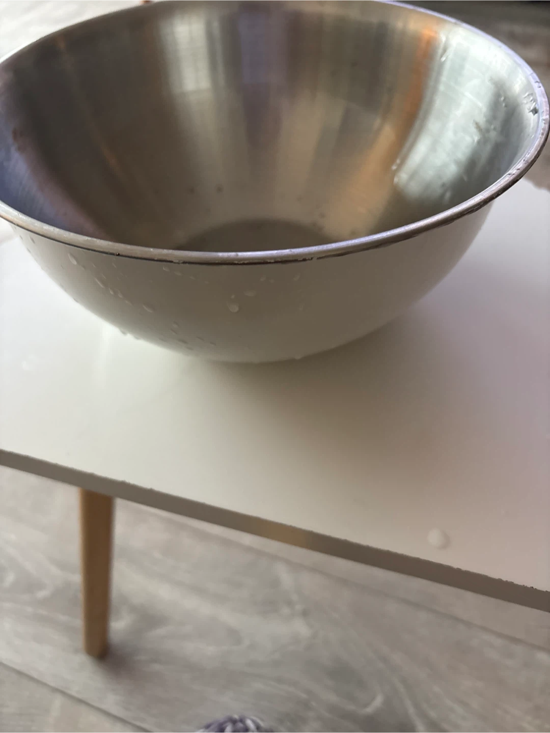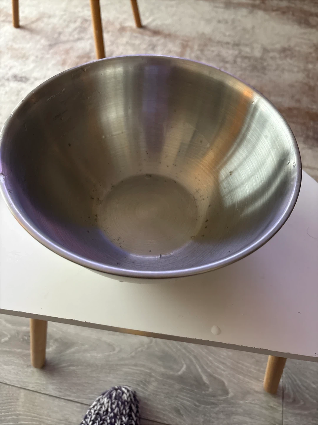 Selling a stainless steel mixing bowl. It's in good condition and ready for all your baking or cooking needs! It's a versatile kitchen essential perfect for mixing ingredients or serving salads