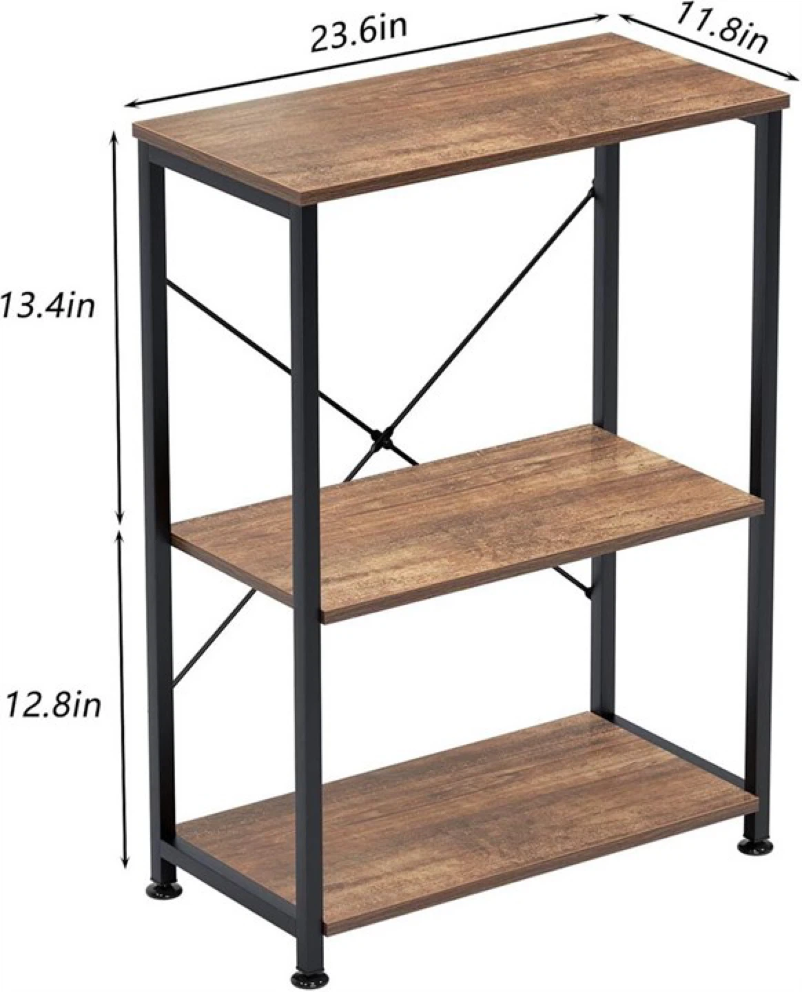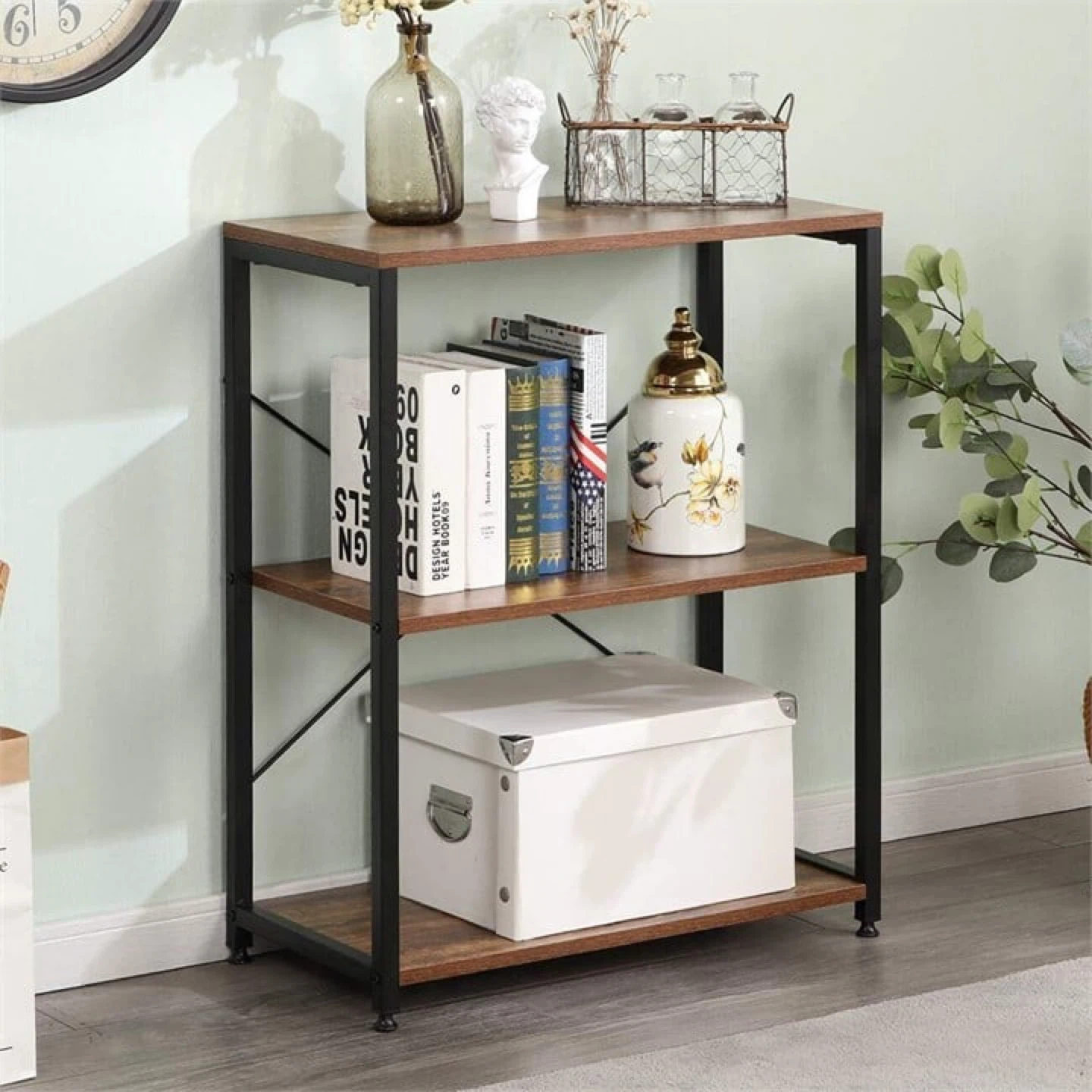 3-Tier Brown Wood Shelf with Black Metal Frame