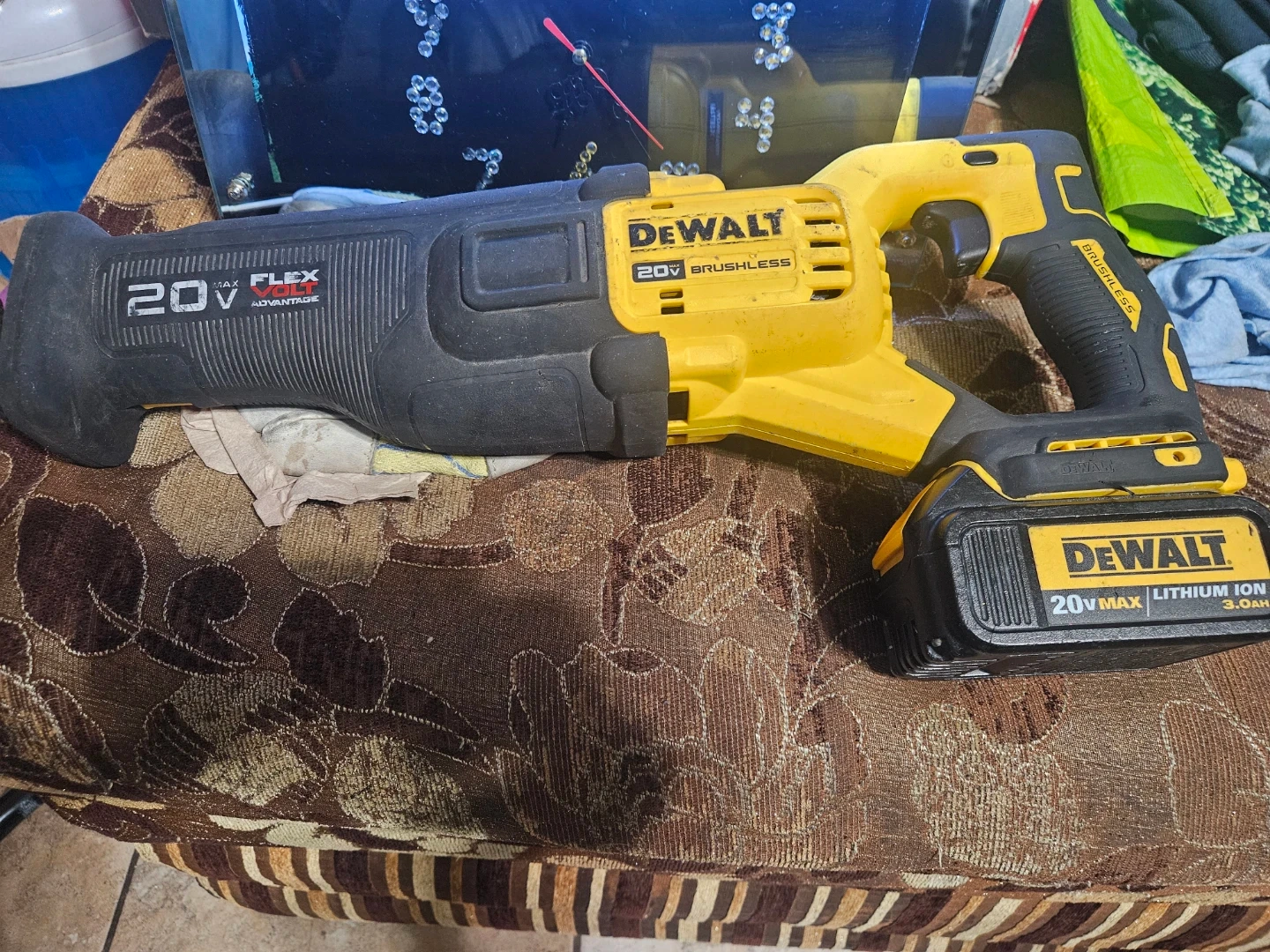 Selling a DeWalt 20V MAX Brushless Reciprocating Saw. It's in great shape and ready for your next project! This saw features a brushless motor for efficient performance and long runtime. It uses a 20V MAX lithium-ion battery.