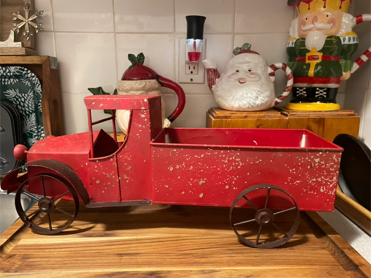 Red Metal Antique Truck Decor