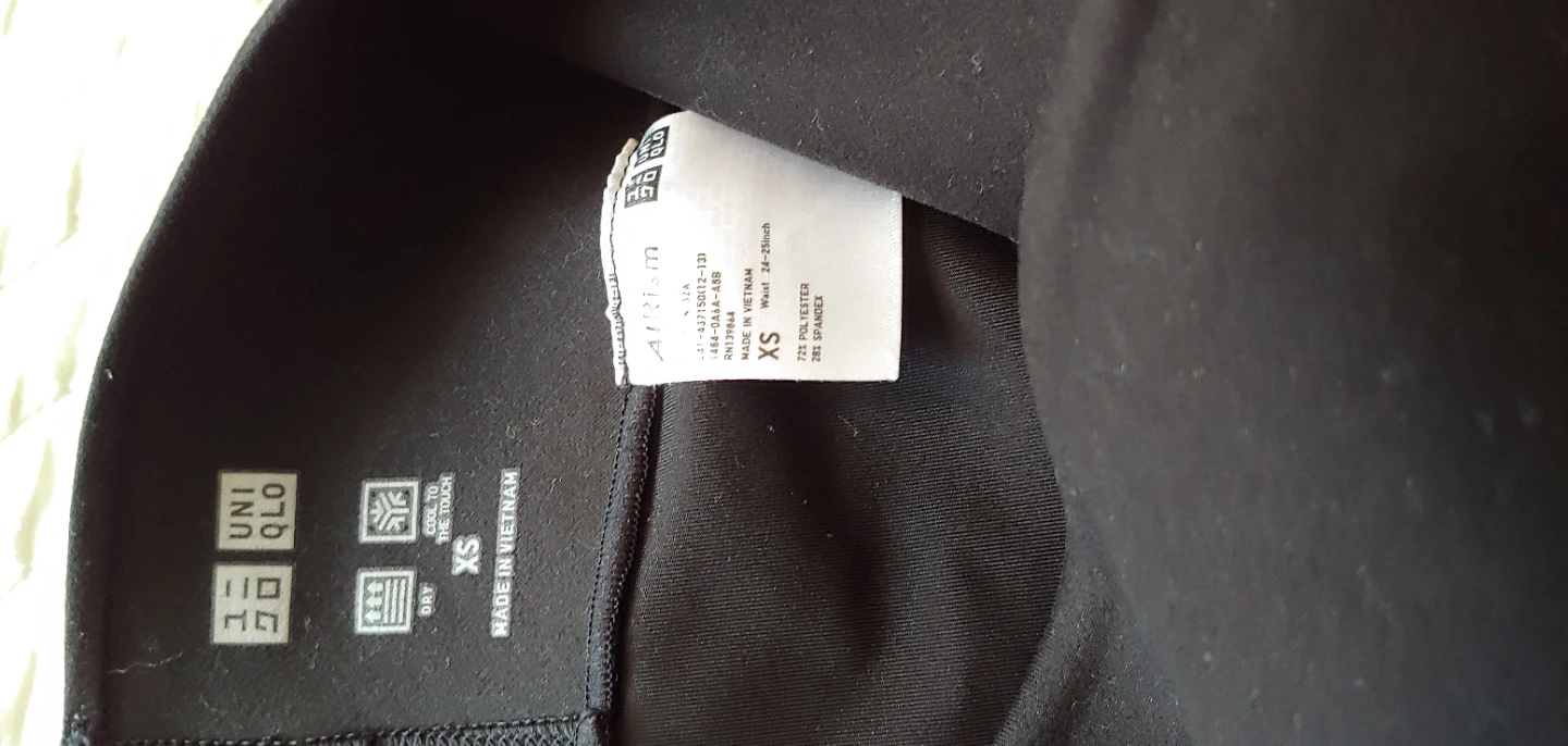 Selling a pair of Uniqlo Airism leggings in black, size XS. These are super comfortable and great for workouts or just lounging around! The material is 72% polyester and 28% spandex.