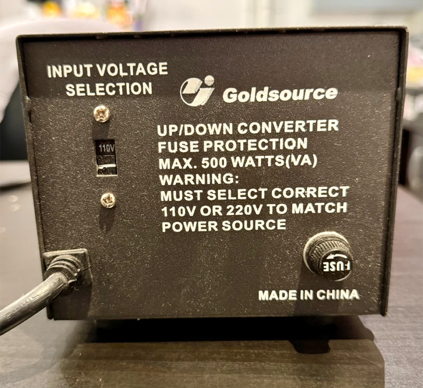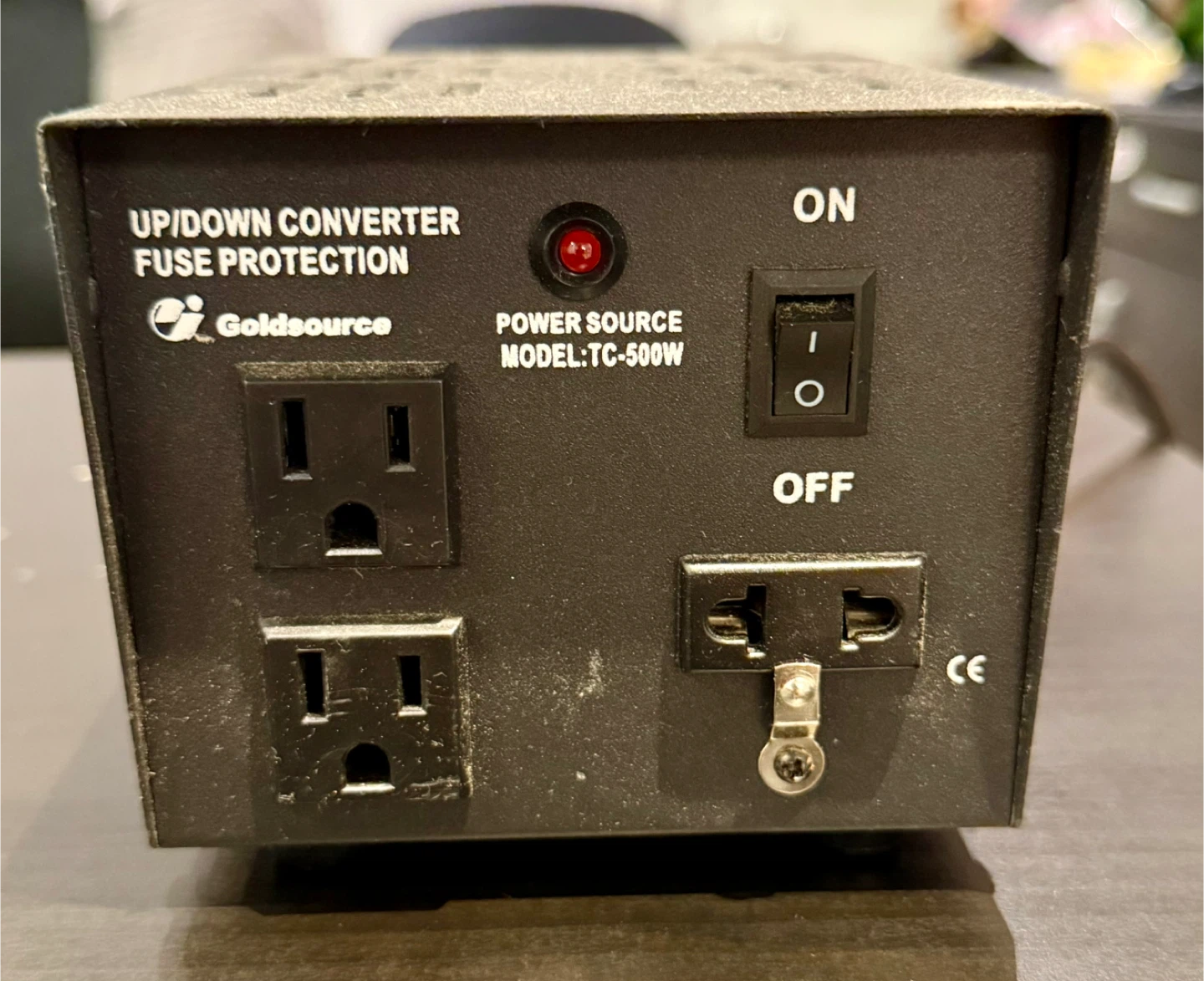 Selling a Goldsource TC-500W Up/Down Converter with fuse protection. It has an input voltage selection for 110V or 220V. Max 500 Watts (VA).
