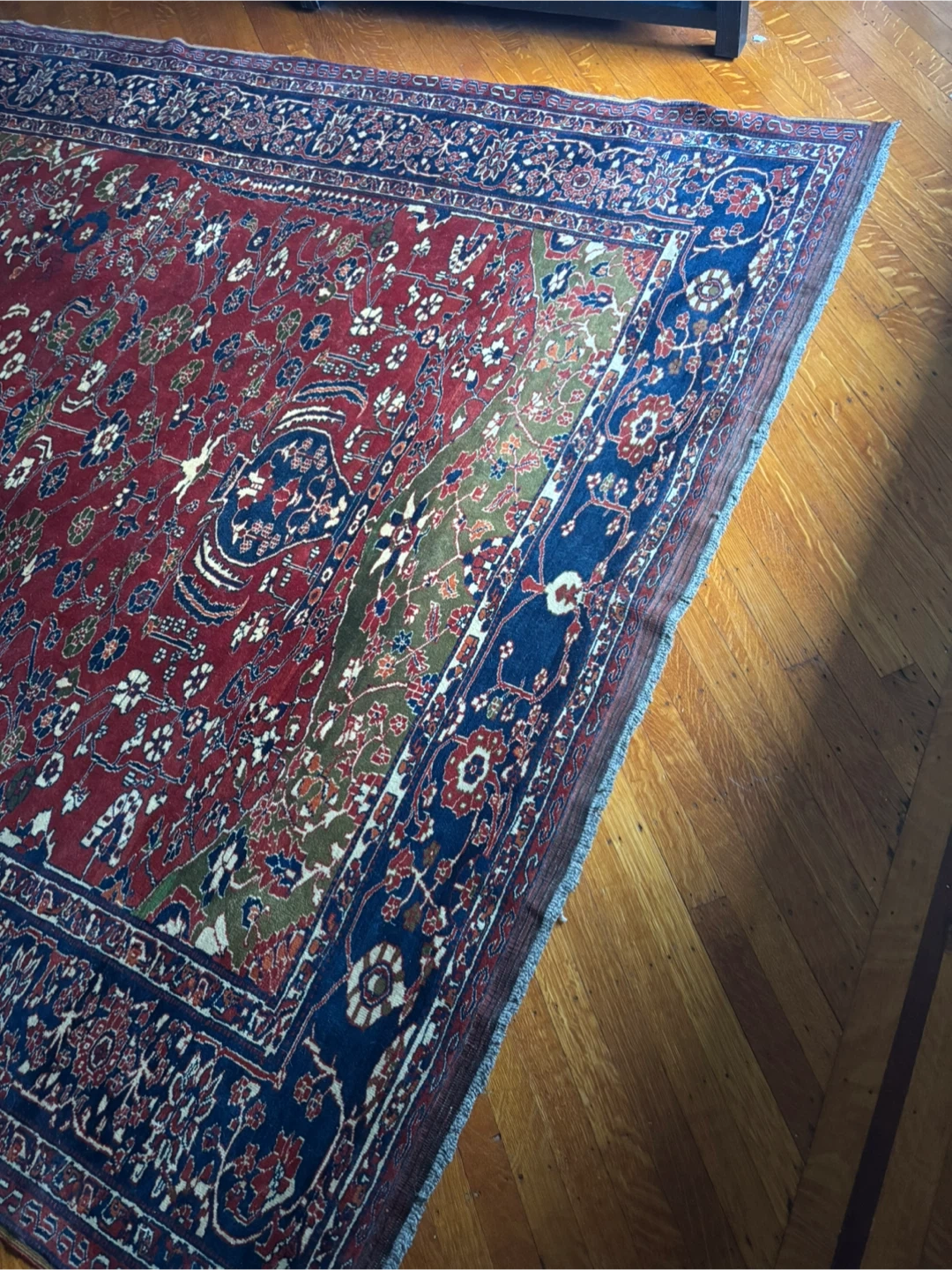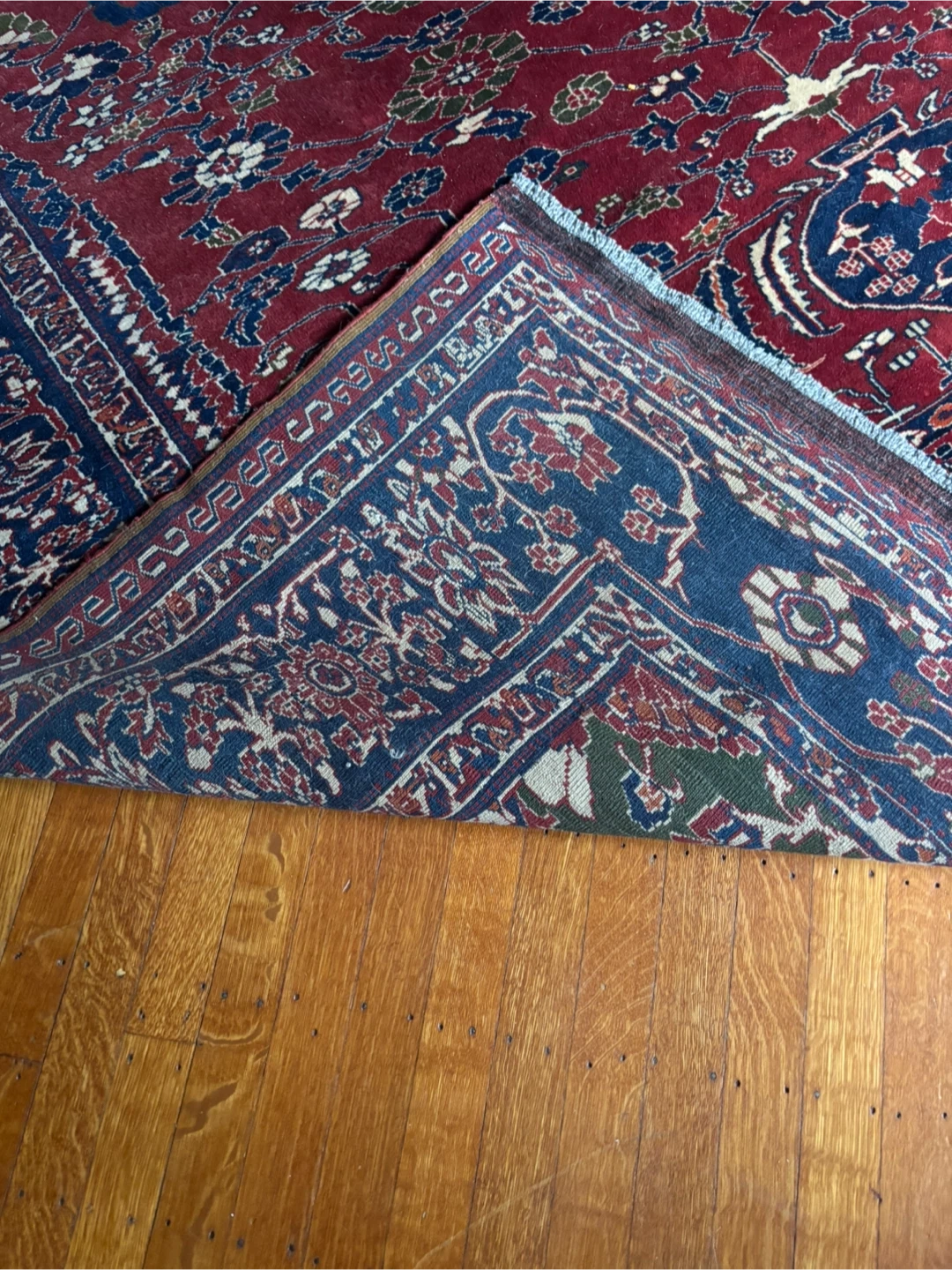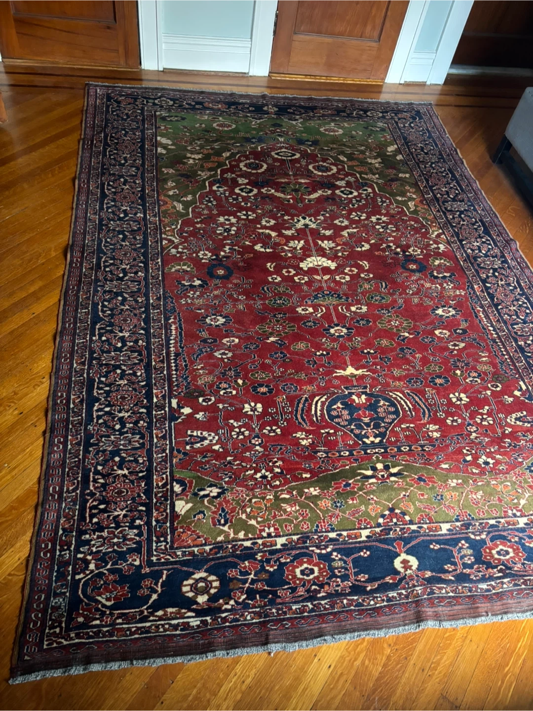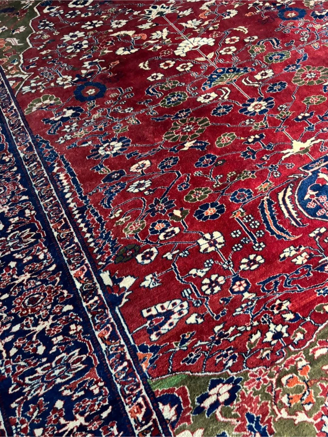 I have a 7′ × 9′8″ hand-knotted Persian floral rug in good antique condition.