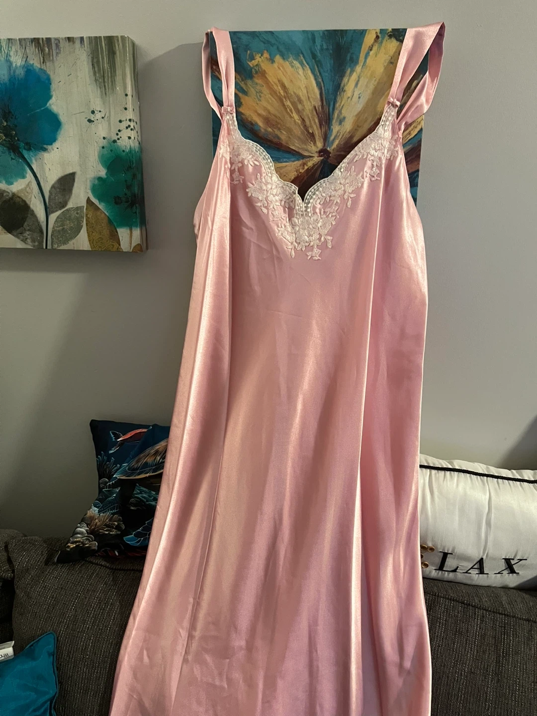 Here's a brand new Oscar de la Renta nightgown in size XL! It's a beautiful pink colour with lace detailing, called Lace Enchantment. Perfect for a cozy night's sleep or a special occasion