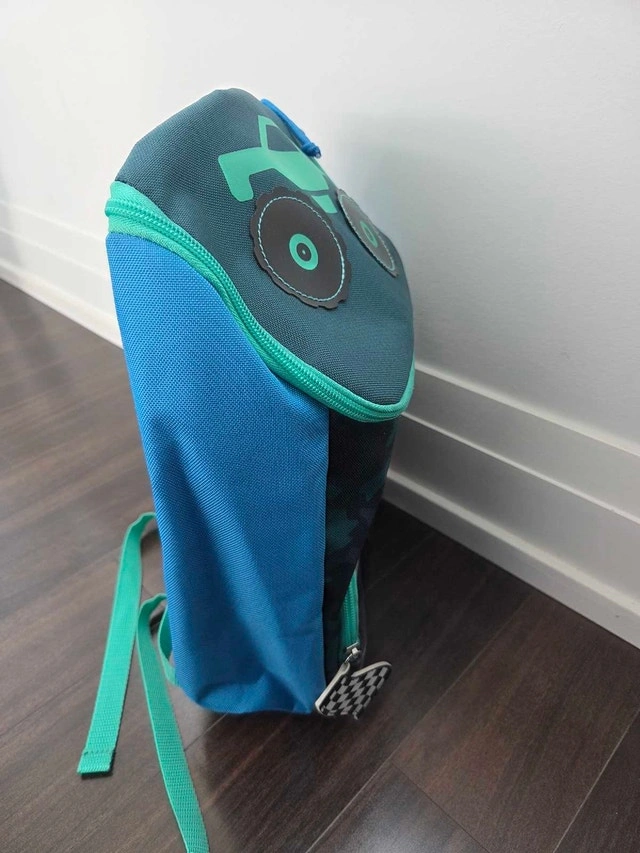 This is a Skip Hop backpack, perfect for your little monster truck enthusiast! It's in used condition, but still has plenty of life left for school, travel or fun adventures.