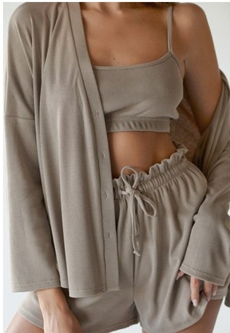 3-Piece Home Wear Light Knitted French Ice Silk Rib Chest