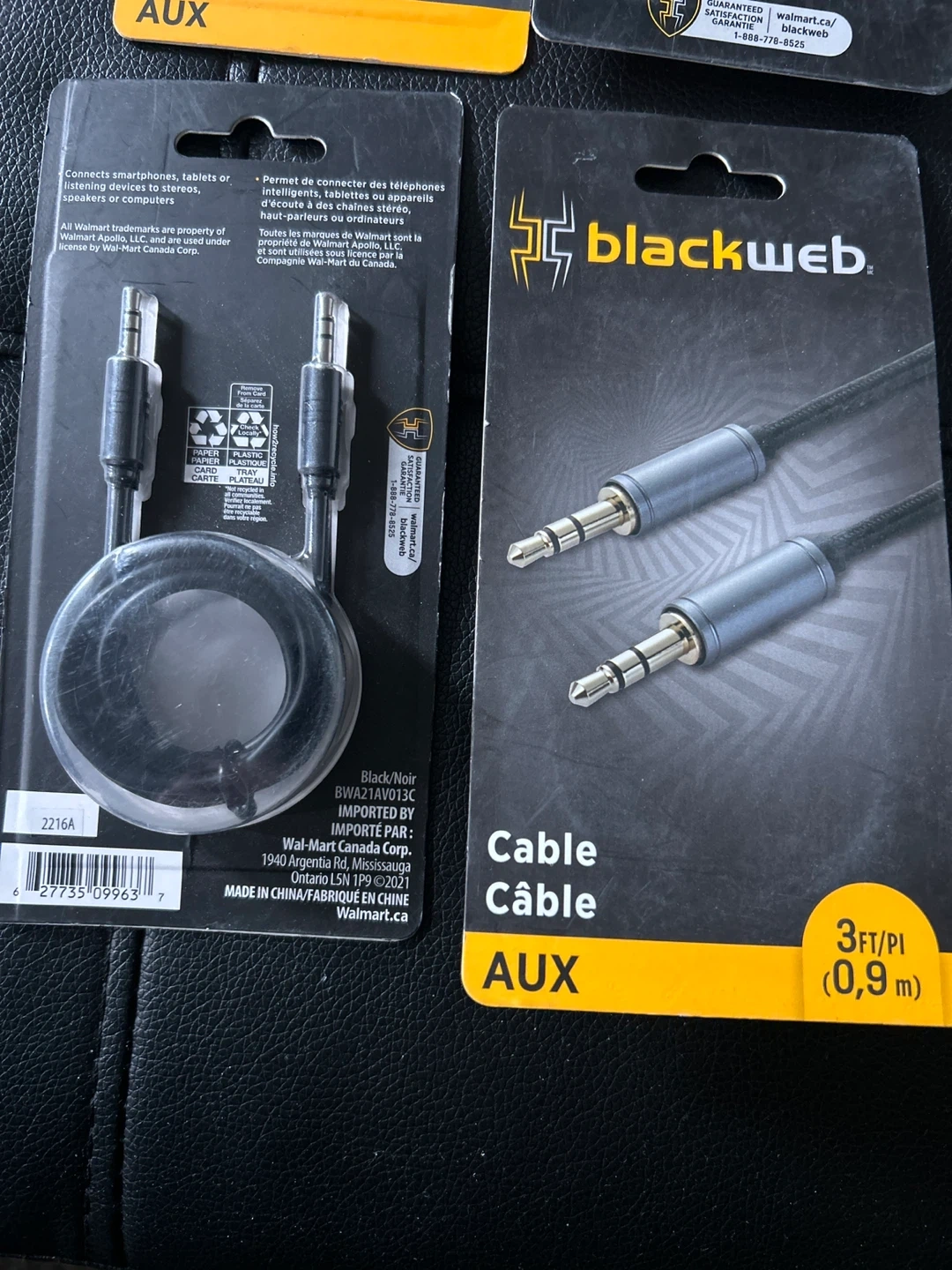 I have a brand new Blackweb AUX cable for sale! It's 3ft long (0.9m) and perfect for connecting your smartphone, tablet, or other listening devices to stereos, speakers, or computers