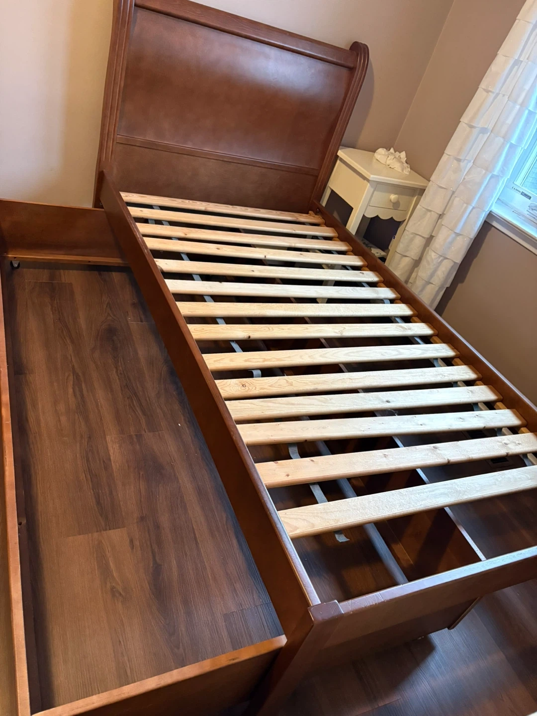 Buy & SellWood Bed Frame with Storage DrawerWood Bed Frame with Storage Drawer$150Selling a wood bed frame. You can full to be a another bedConditionLike newWHERE TO MEETToronto Public Library - Jane/Sheppard BranchView MapSELLERGloriaJane Heights140 reviews2 chats·0 favorites·9 viewsSEND CHAT TO SELLERHi Gloria! I’m interested in your listing.Hi Gloria! I’m interested in your listing.Get the Karrot app to chatSign In to chat