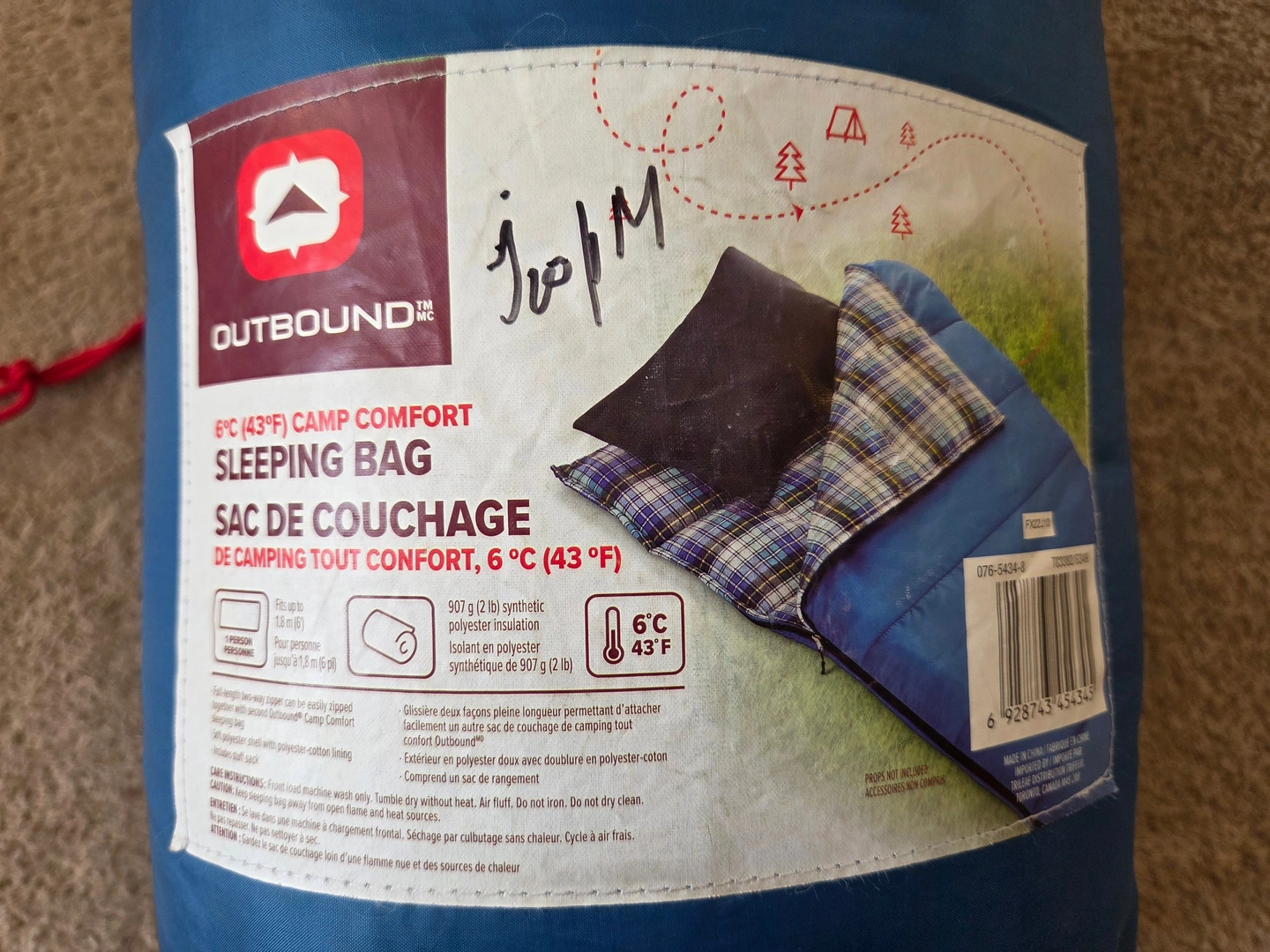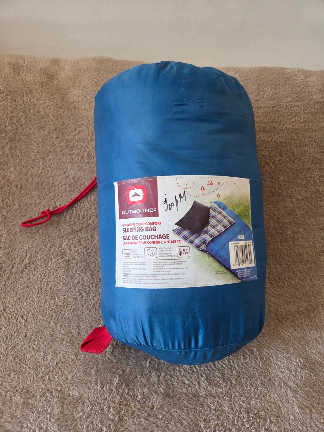 Simple, warm and comfy rectangular sleeping bag from Canadian brand Outbound. Comfort-rated to 6°C, with a plaid lining and synthetic insulation. Used a few times – the main zipper is broken, so it’s priced for repair or for use as a camp blanket. Stuff sack included.