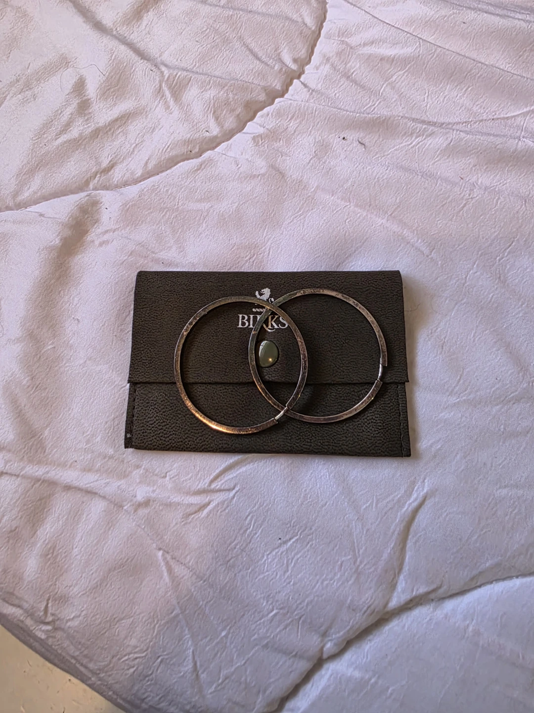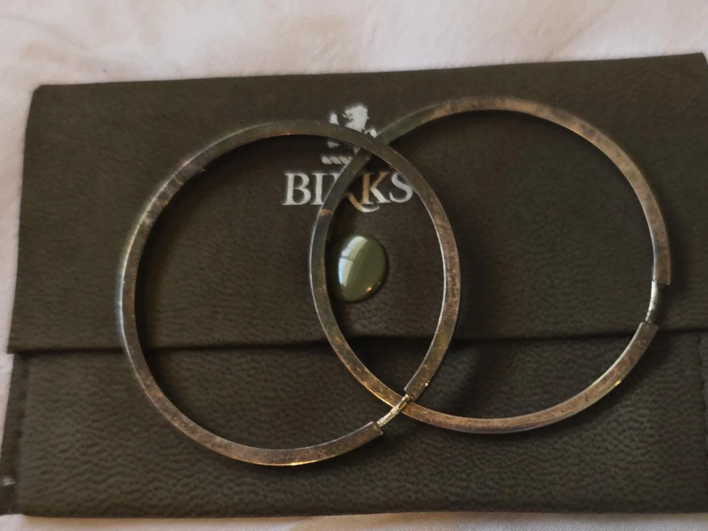 Selling a pair of Birks silver hoop earrings. They measure approximately 2.5 inches in diameter and come with their original pouch.