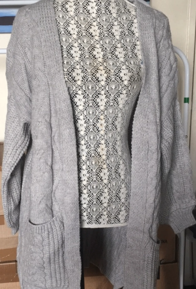 Gray Women's Knitted Woven Pocket Cardigan