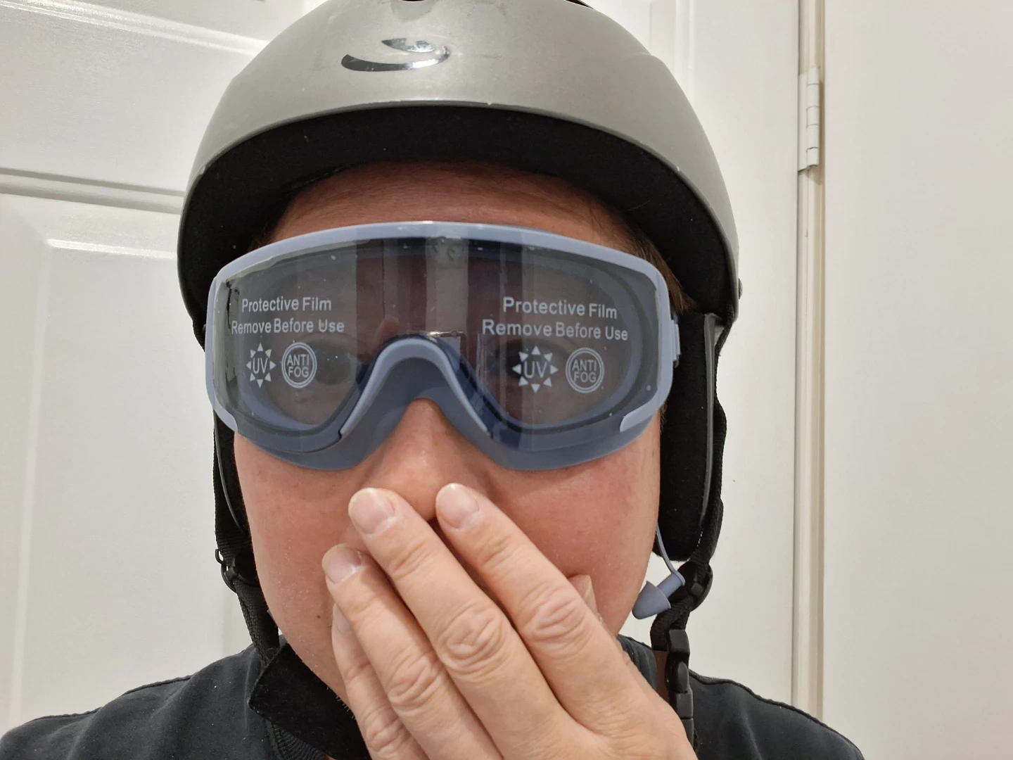 Goggles, NEVER FOG, UV Protection, New, for Snowboard or Skis, NEVER FOG up because it is swimming goggles but 100% sealed, Anti fog completely, NEVER Fog up anyway. It is very comfortable as well because of the soft silicon edge with complete seal for different facial contours.