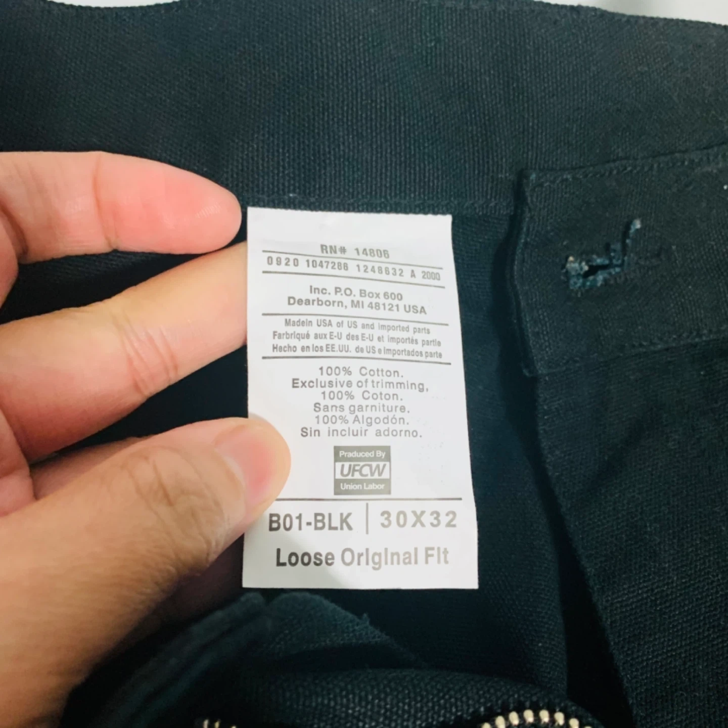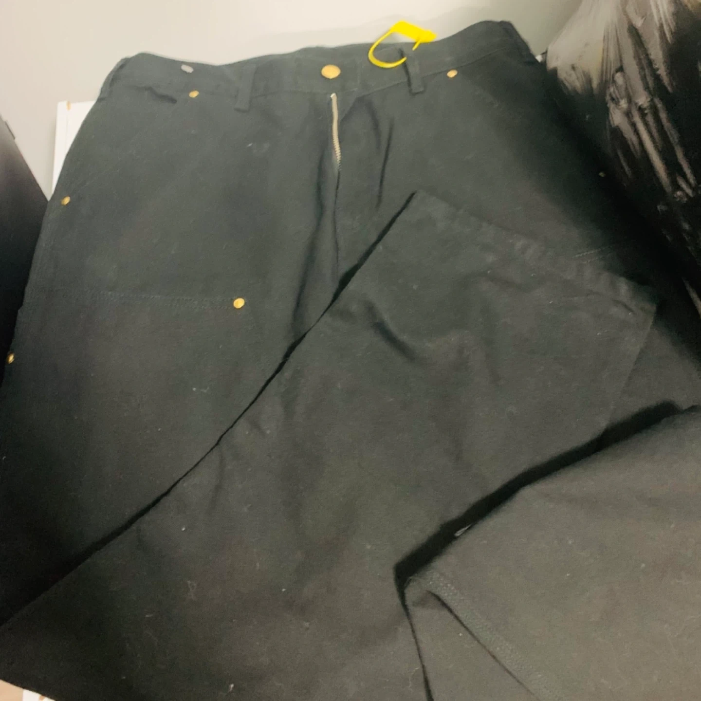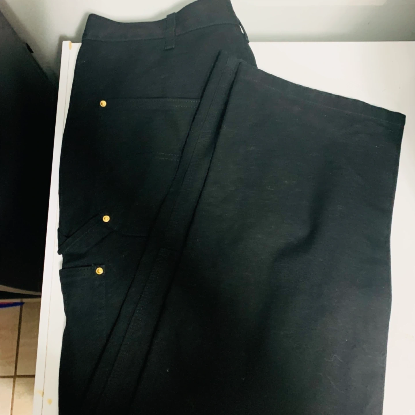 Selling a pair of Carhartt B01-BLK carpenter pants in black. These are a size 30x32 and have a loose original fit. They're made of 100% cotton