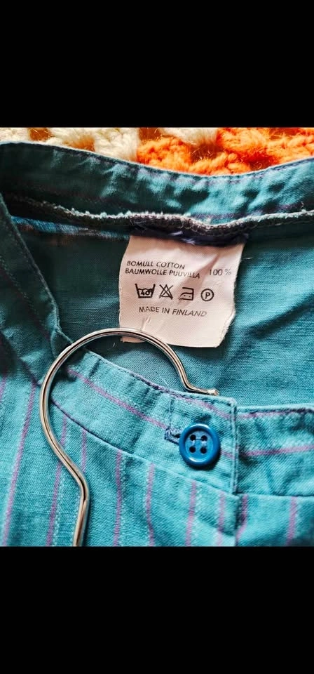Vintage Finnish Prairie Blouse Teal Striped Plaid Cotton Nordic