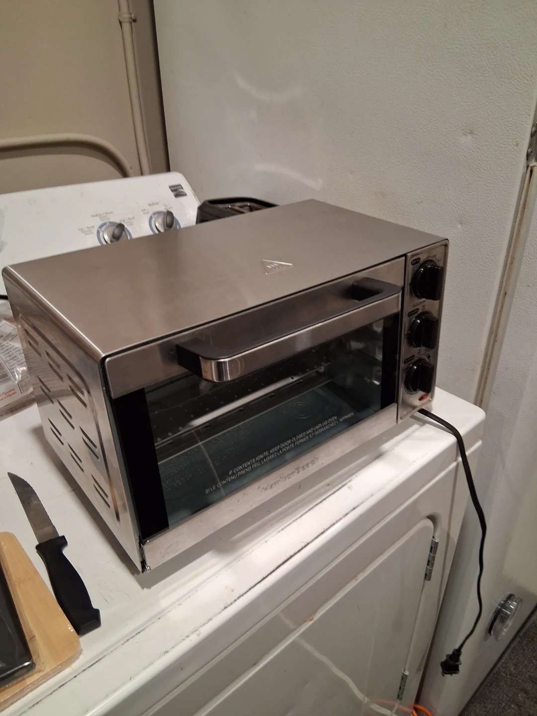 Selling a Hamilton Beach toaster oven. It's in good working condition and ready for a new kitchen. The oven has a sleek, stainless steel finish that will look great on any countertop. Message me if you're interested!