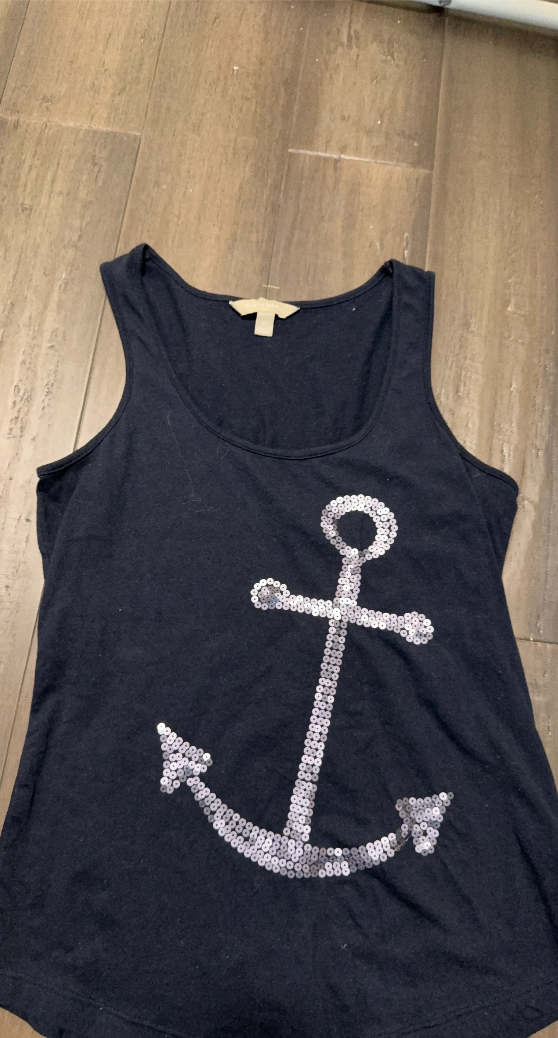 This is a Banana Republic navy tank top, size extra small. It features a cute anchor design made of sequins. It's in great condition. Cash and pick up.