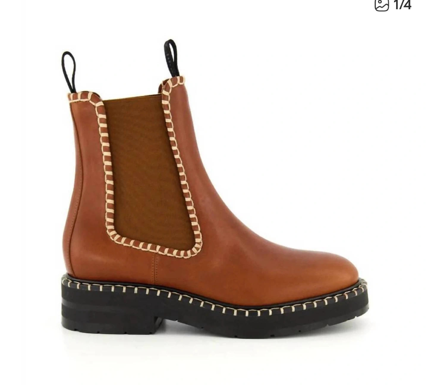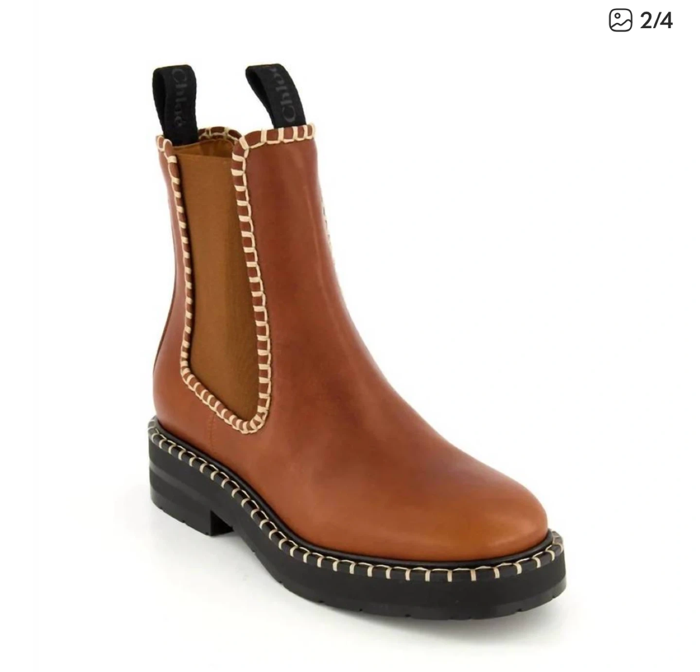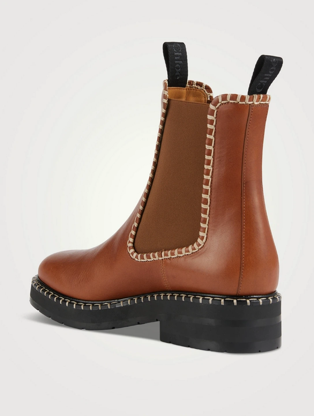 Beautiful pre-loved CHLOE in amazing condition. Retail over $1350 plus tax. Crafted from vegetable-tanned calfskin, the Noua flat Chelsea boot has a boyish design accentuated by the chunky rubber sole and grounded, everyday silhouette. Anchored in the Maison's DNA, the authentic handmade stitches add refined contrast and an equestrian allure. Oversized, CHLOÉ-branded front and back loops make this casual bootie easy to slip on and off.