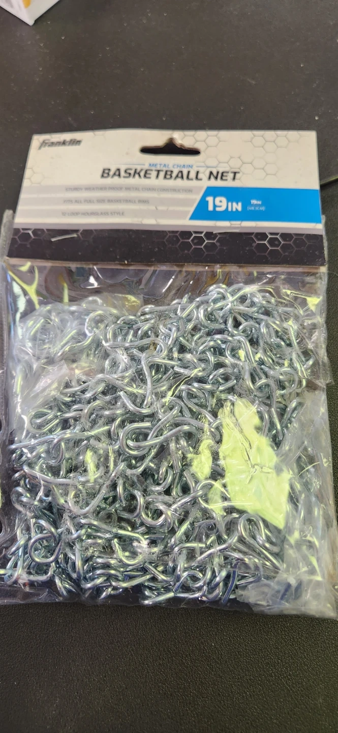 Get ready to upgrade your basketball game with this Franklin Metal Chain Basketball Net! It's a sturdy, weatherproof net with metal chain construction, designed to fit all full-size basketball rims. This net is 19 inches in diameter, giving you a professional-style hoop at home