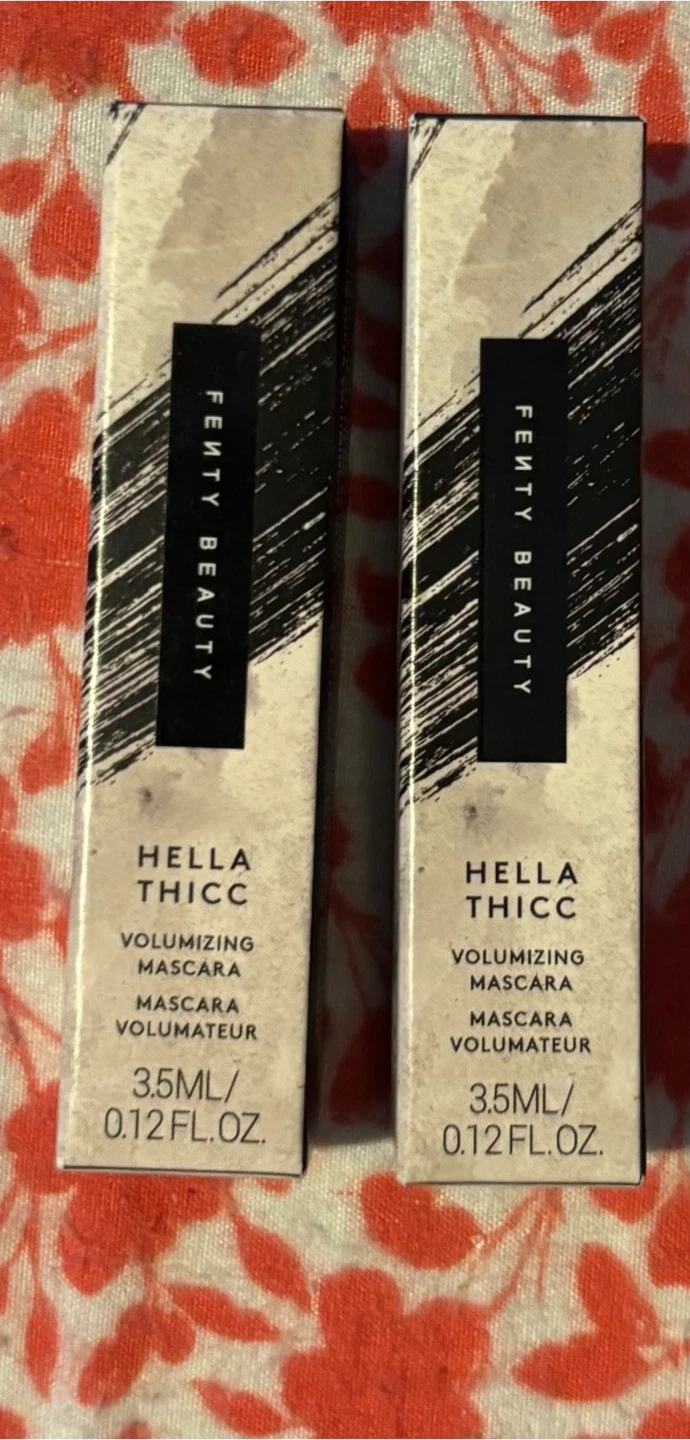 Selling two brand new Fenty Beauty Hella Thicc Volumizing Mascaras! Each mascara contains 3.5ml/0.12 fl. oz. Get that volumized look