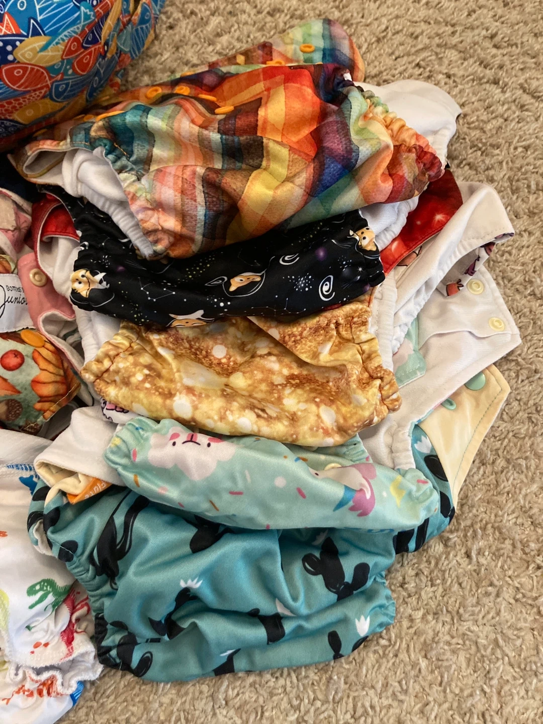 Selling a mixed lot of cloth diapers(around 30-40 )! They come in various colours and patterns.