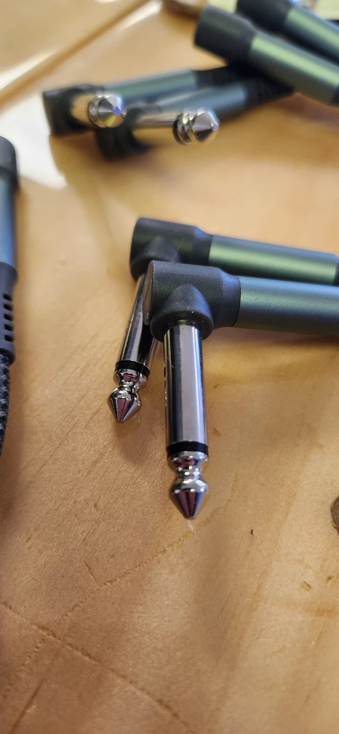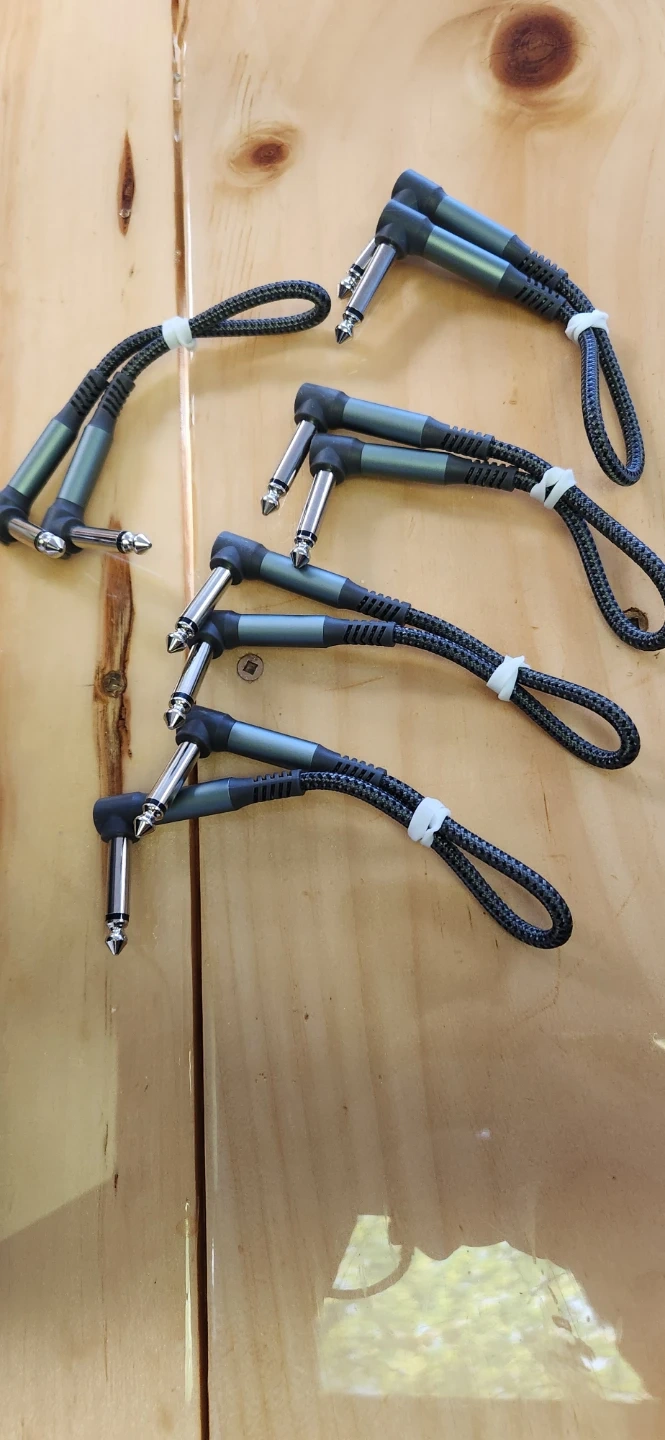 Selling a set of right-angle guitar patch cables. These are great for pedalboards where space is tight, and the right-angle design helps keep everything neat and tidy. Perfect for connecting your effects pedals!