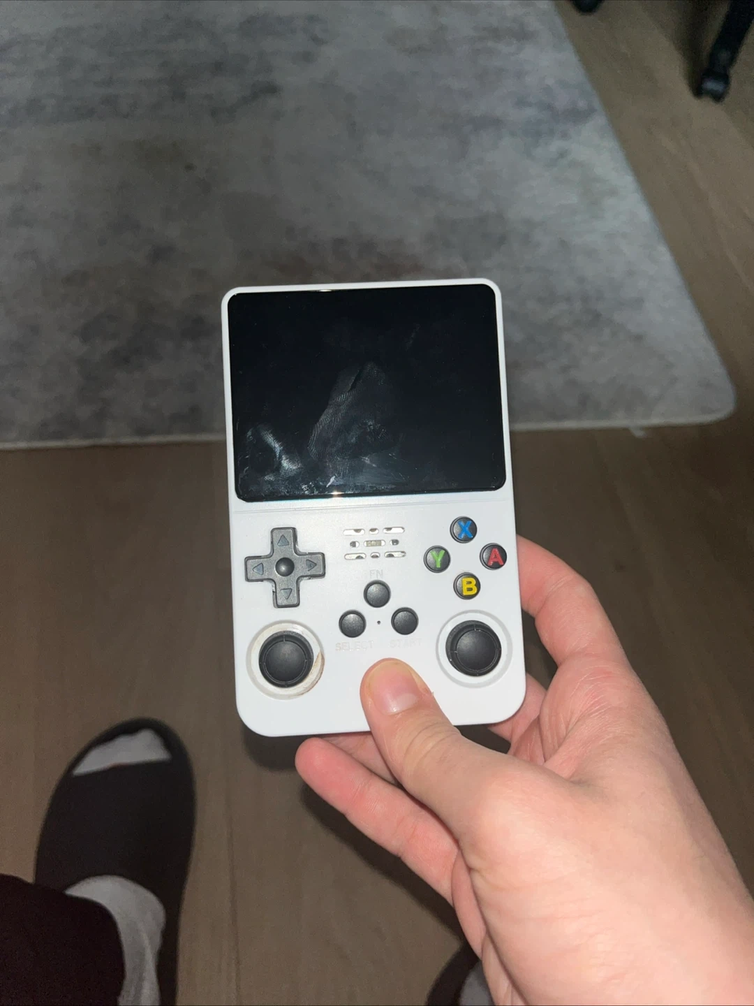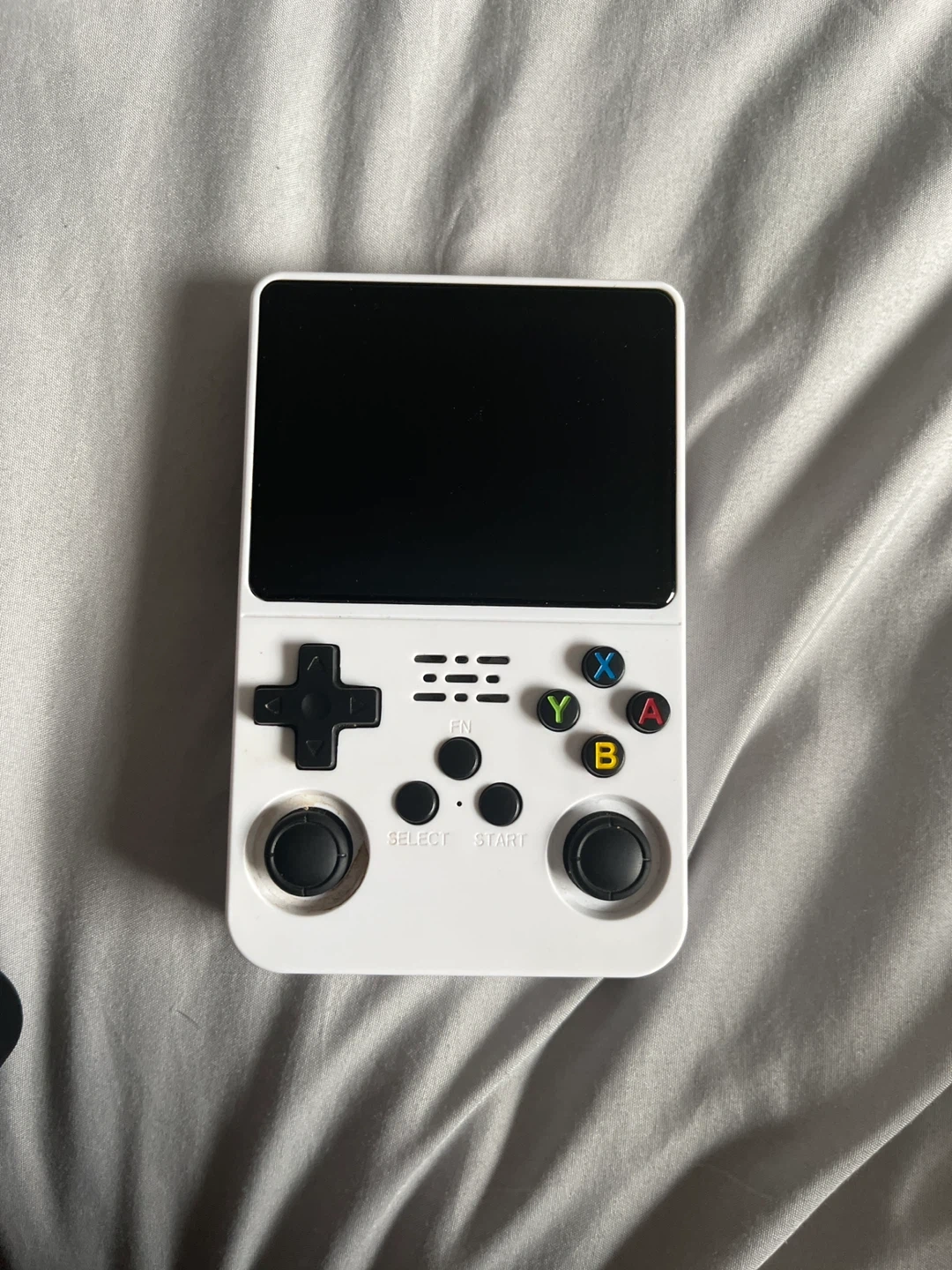 Selling an Anbernic R36s handheld console in white. It's in great shape and ready for a new owner! This portable gaming device is perfect for on-the-go entertainment