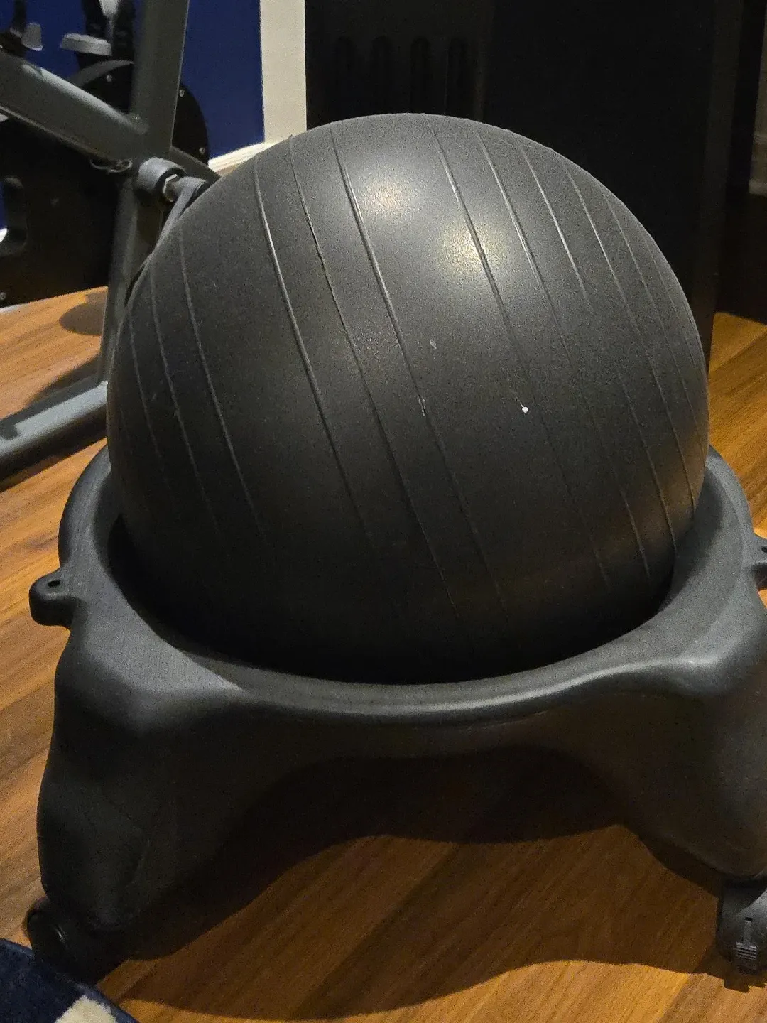 Selling a black Gaiam balance ball chair! It's in great shape and ready to help improve your posture and core strength while you work. Perfect for home or office use