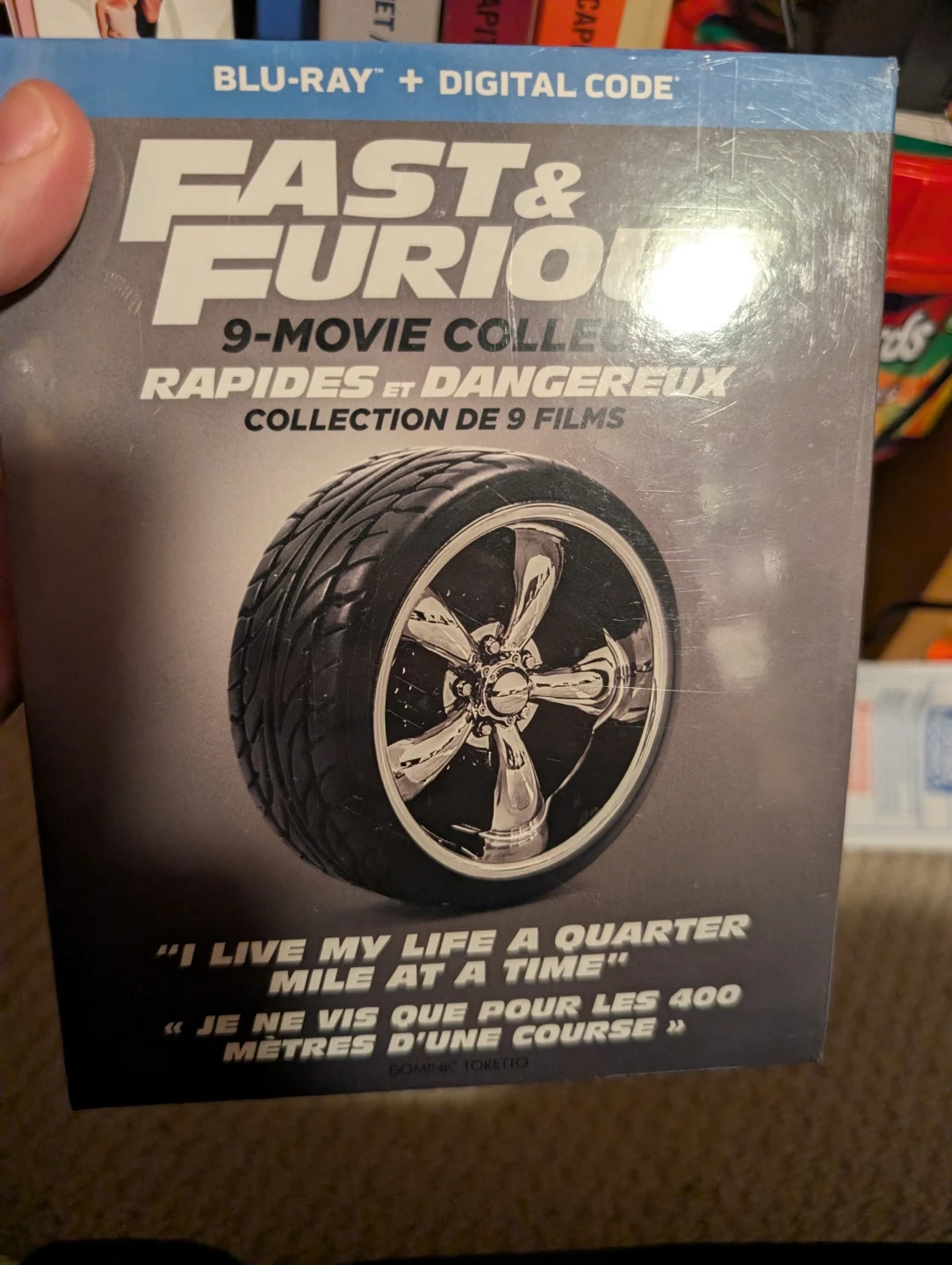 Selling a Blu-Ray + Digital Code of the Fast & Furious 9-Movie Collection. It includes both English and French versions.