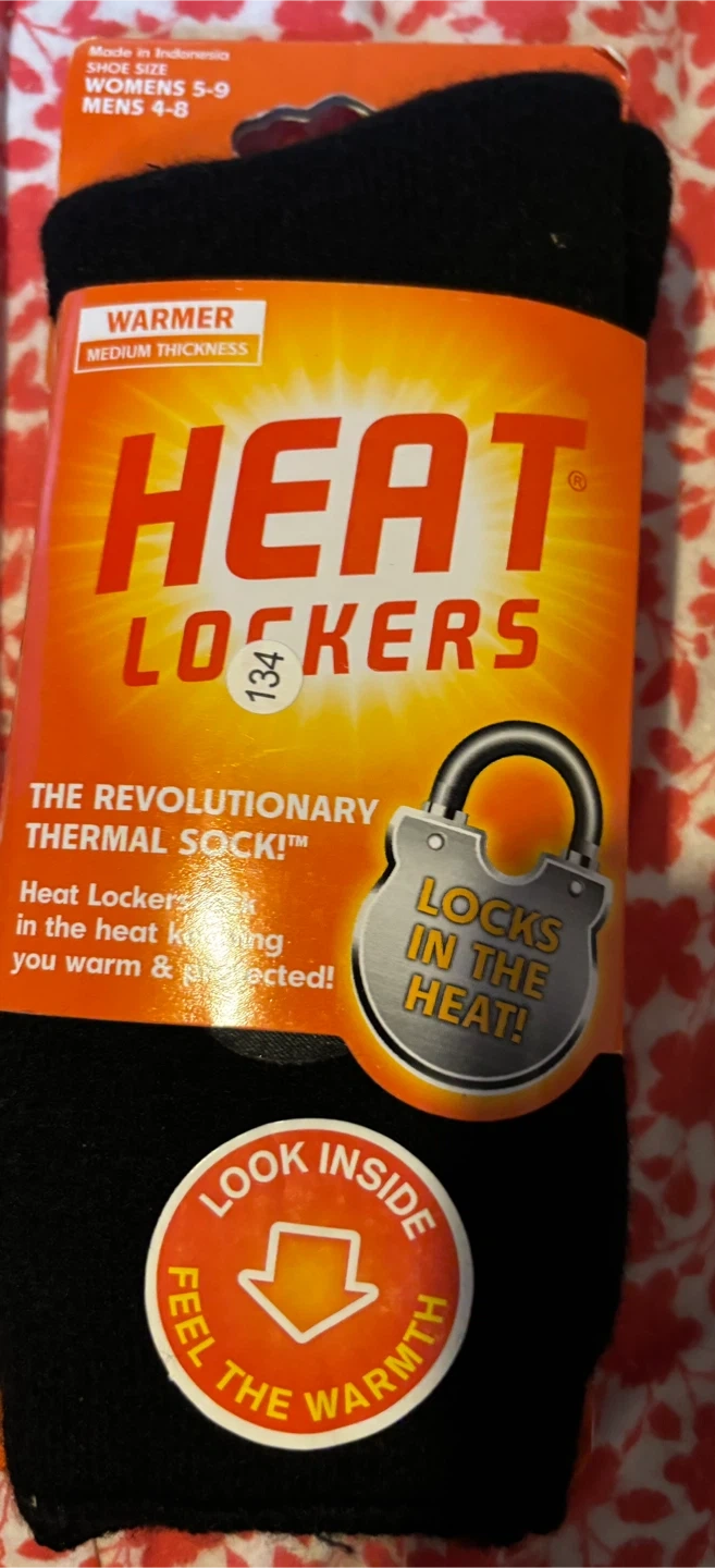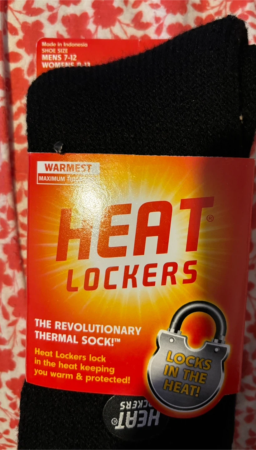 Bundle of Heat Lockers thermal wear to keep you warm! Includes a hat, a pair of socks (womens and men),and a pair of gloves (womens S/M).