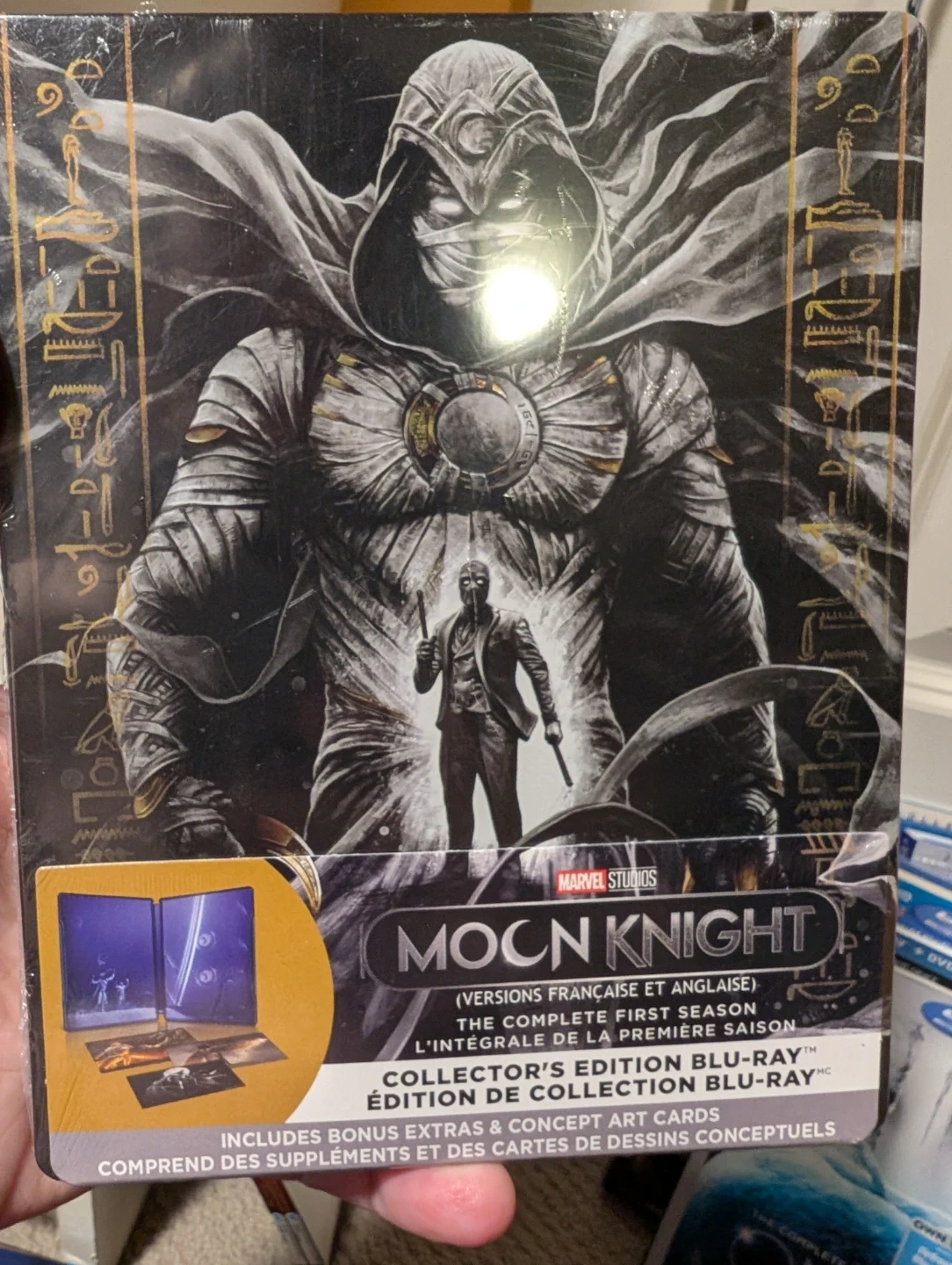 Selling a brand new, still-sealed Collector's Edition Blu-Ray of Moon Knight: The Complete First Season! This edition includes bonus extras and concept art cards, making it a must-have for any Marvel fan. It also includes both French and English versions.