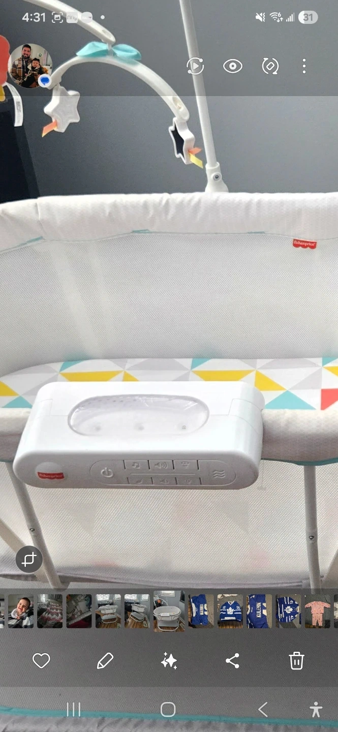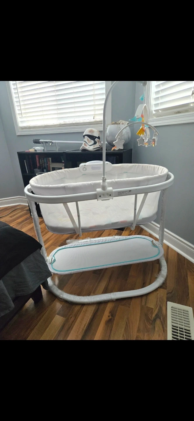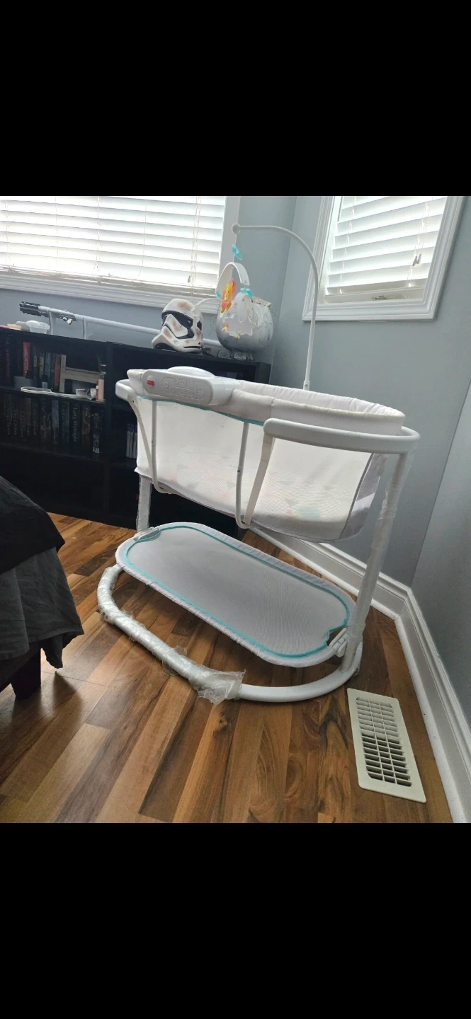 Gently used Fisher-Price Soothing Motions Bassinet in great condition! This bassinet features soothing motions to help your little one drift off to sleep. It's perfect for keeping your baby close during those early months