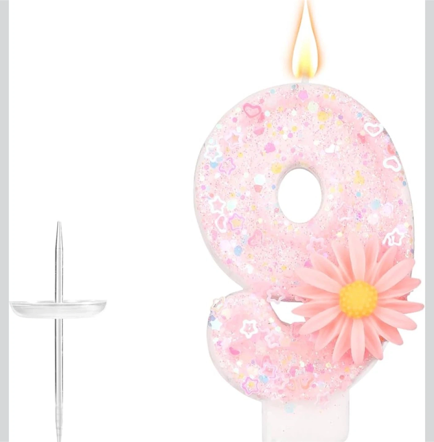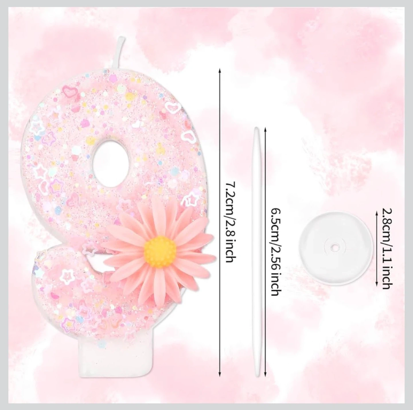 Selling a brand new number 9 birthday candle, still in its original packaging! It's a sparkly pink colour with a cute flower detail. Perfect for a 9th birthday celebration or any event where you need the number 9. The candle measures approximately 7.2cm/2.8 inches in height.
