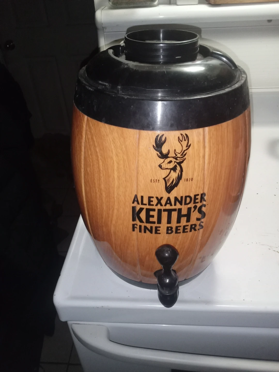 Selling an Alexander Keith's Fine Beers beverage dispenser. It's in good condition and perfect for parties or gatherings! It features the classic Alexander Keith's logo and a tap for easy dispensingš„