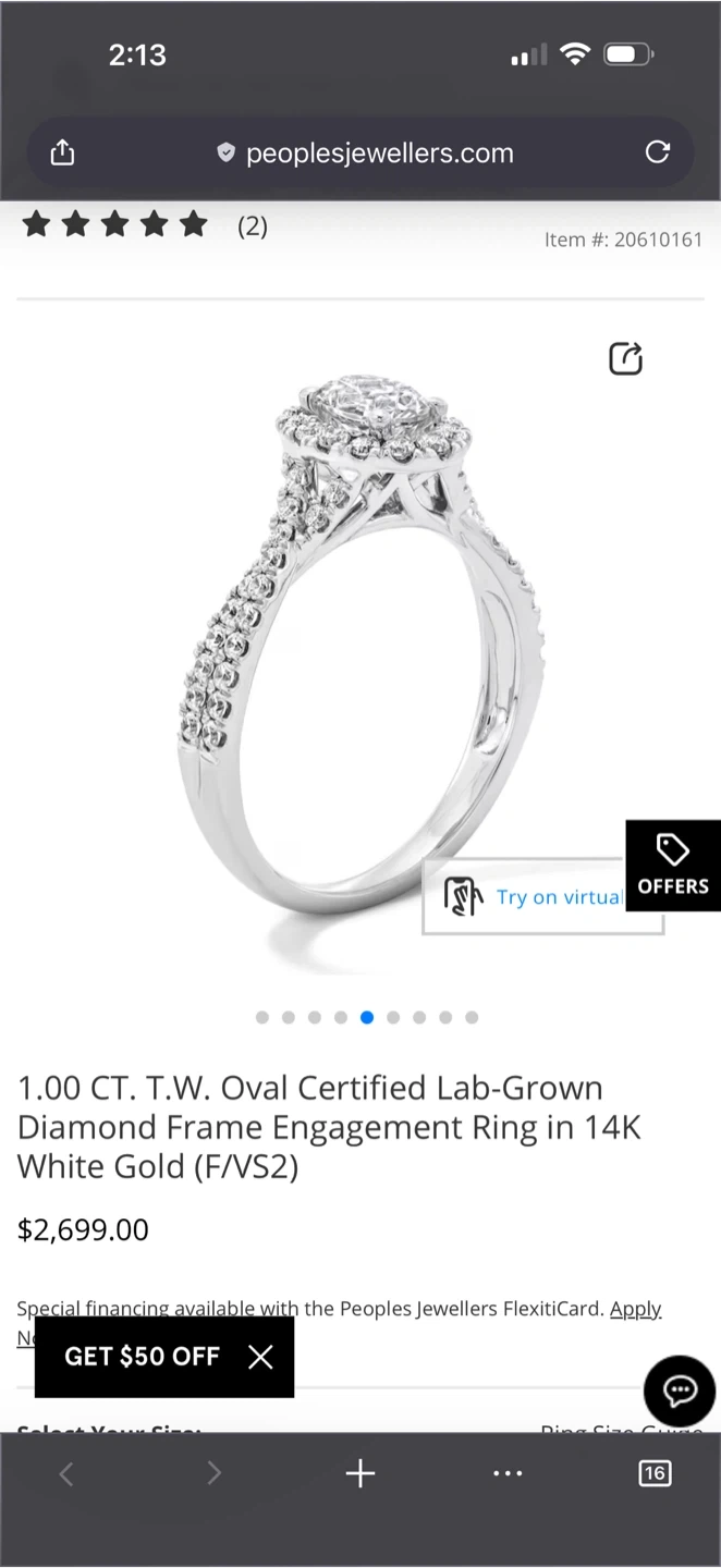 Selling a beautiful 1.00 CT. T.W. Oval Certified Lab-Grown Diamond Frame Engagement Ring in 14K White Gold (F/VS2) from Peoples Jewellers. It comes with the box! Originally bought for $2,699.00. Best offer. Comes with all documents for authentication!