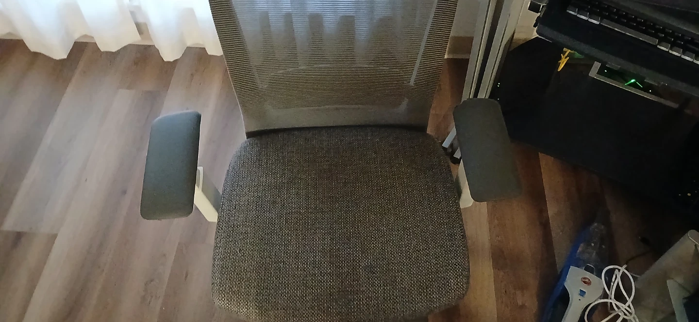 Selling an office chair with a mesh back. It's in great condition and ready for a new workspace! The mesh back provides good support and breathability, perfect for long hours at the computer