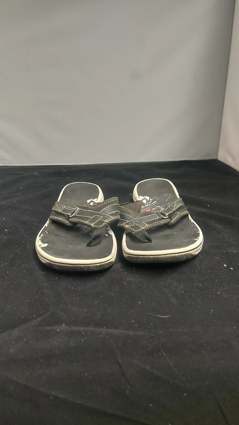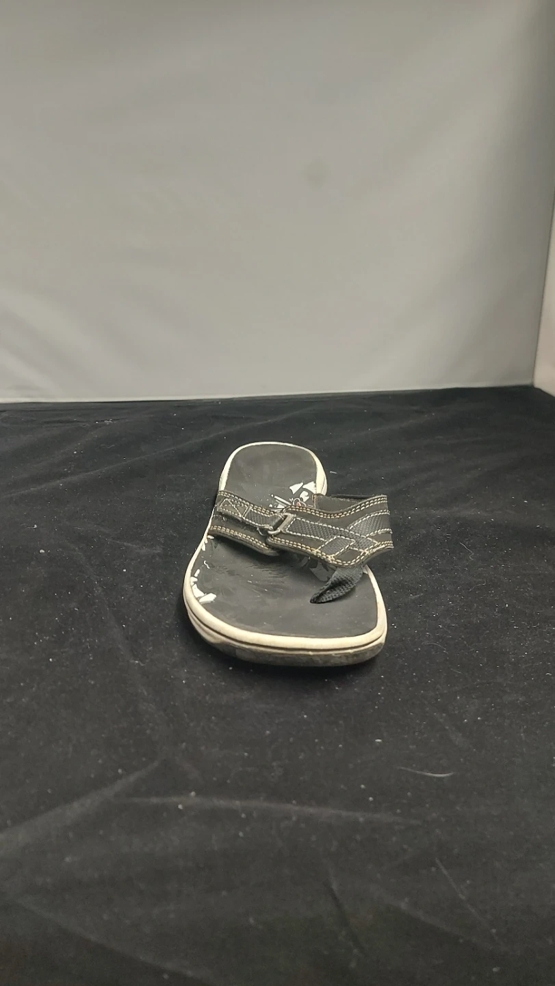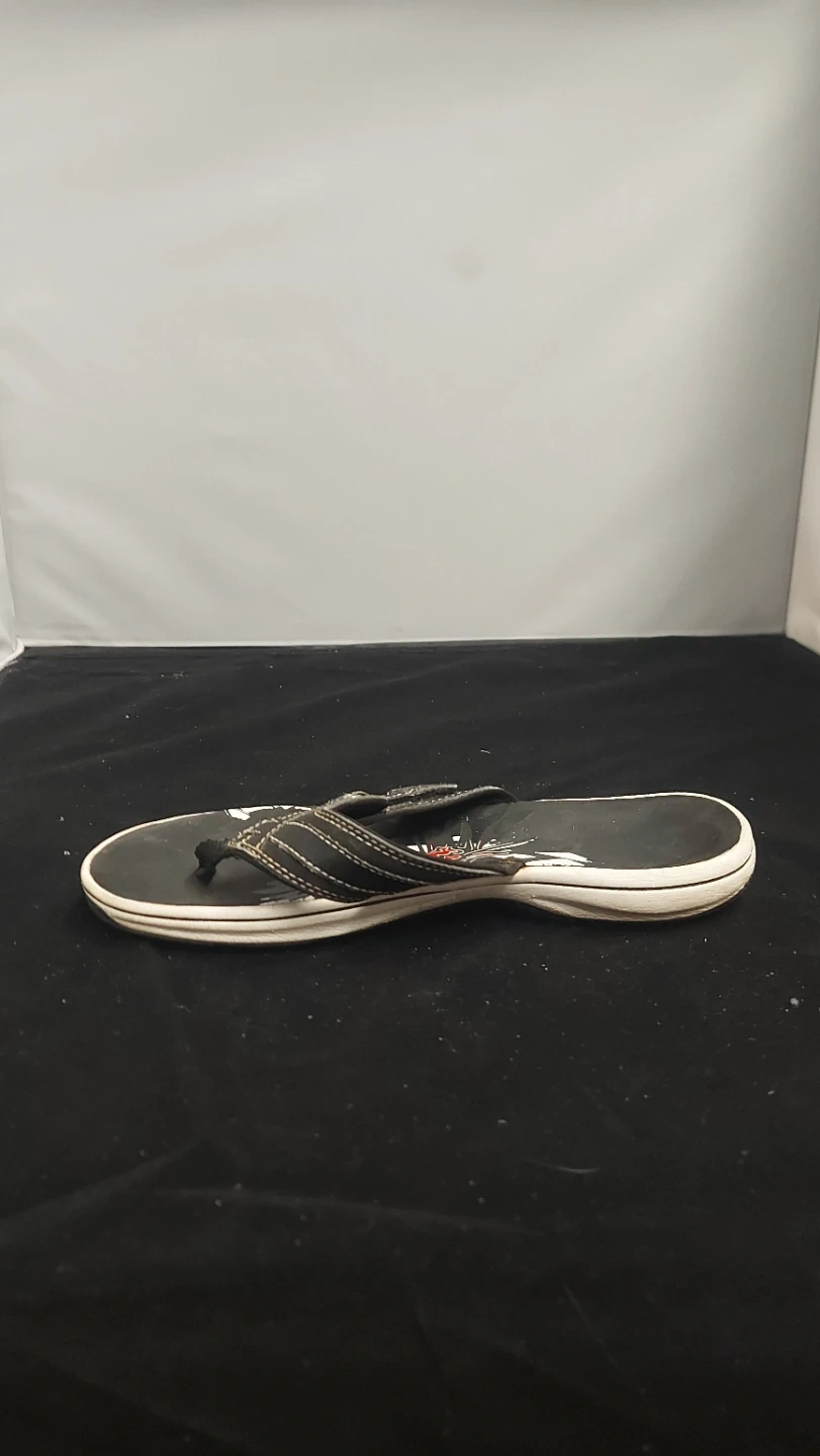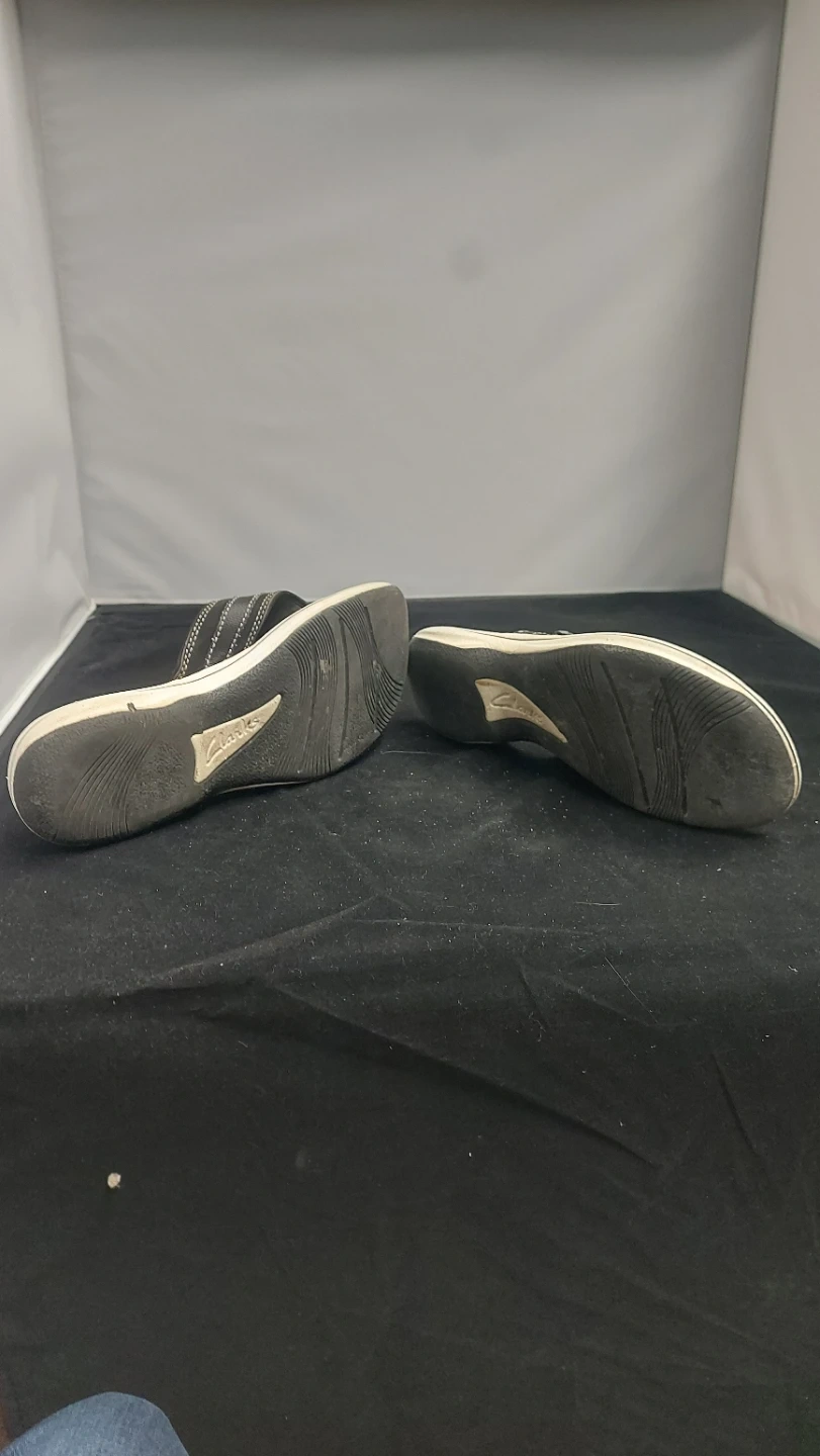 These are a pair of women's Clarks flip flops in black. 33 pre owned & open to negotiate. They have a flower design on the footbed and an adjustable strap. Show a little signs of wear but are still in good condition for casual use.