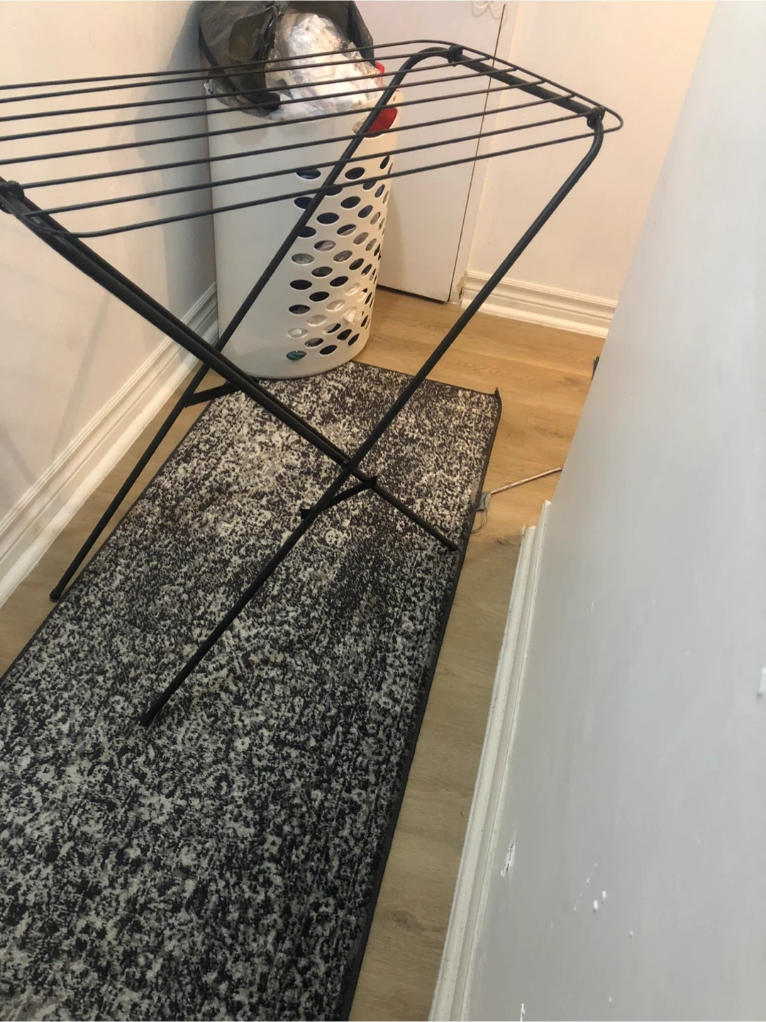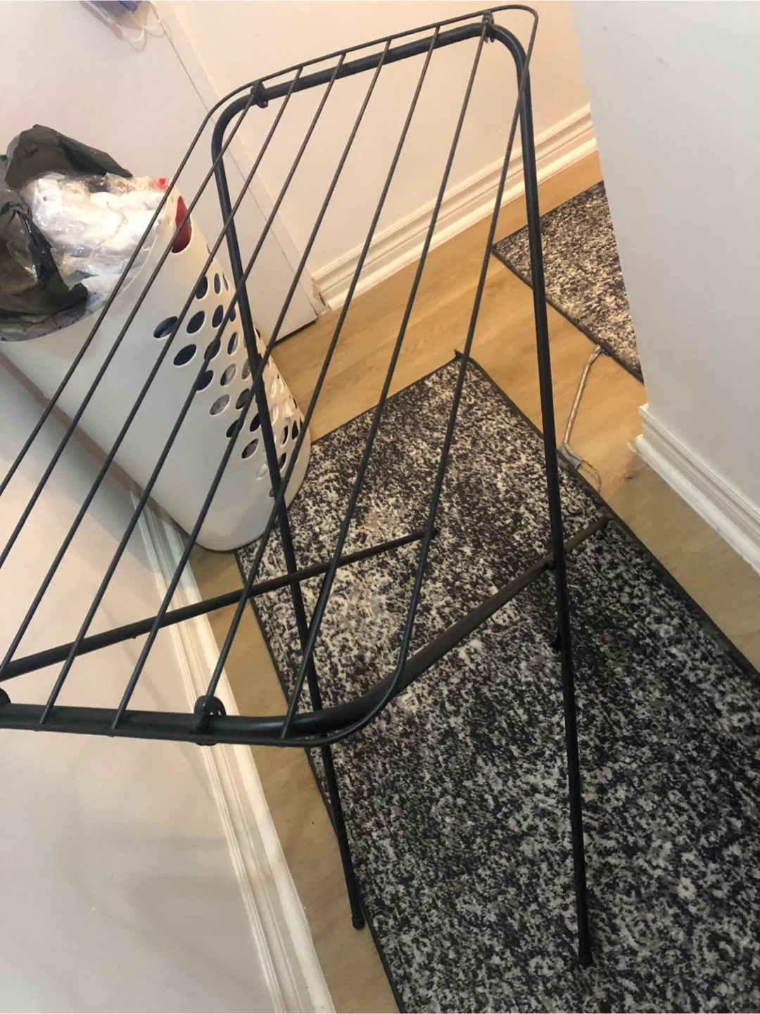 Selling a clothes drying rack in black. It's in great shape and ready to help you save on dryer costs! Perfect for apartments or small spaces