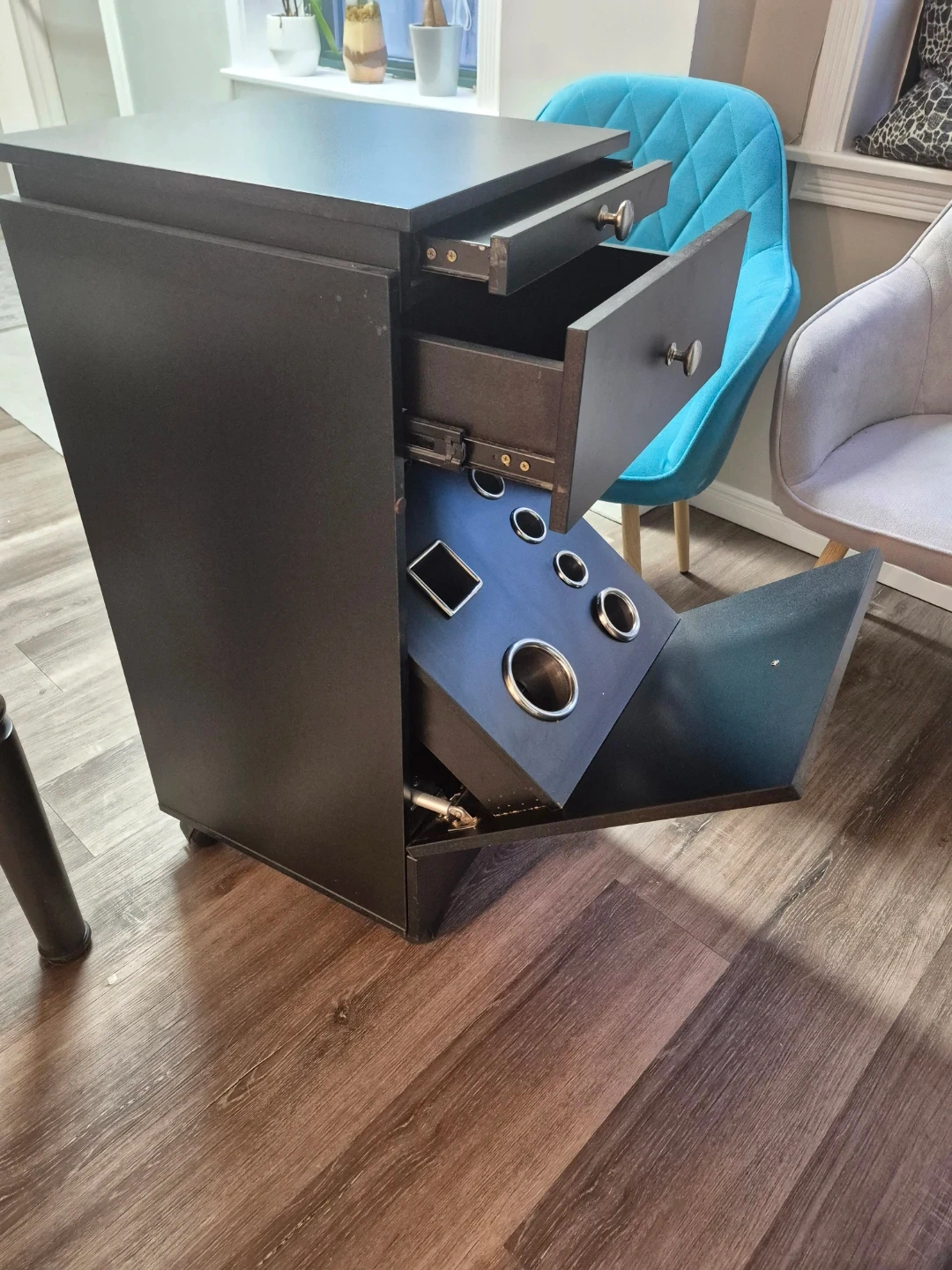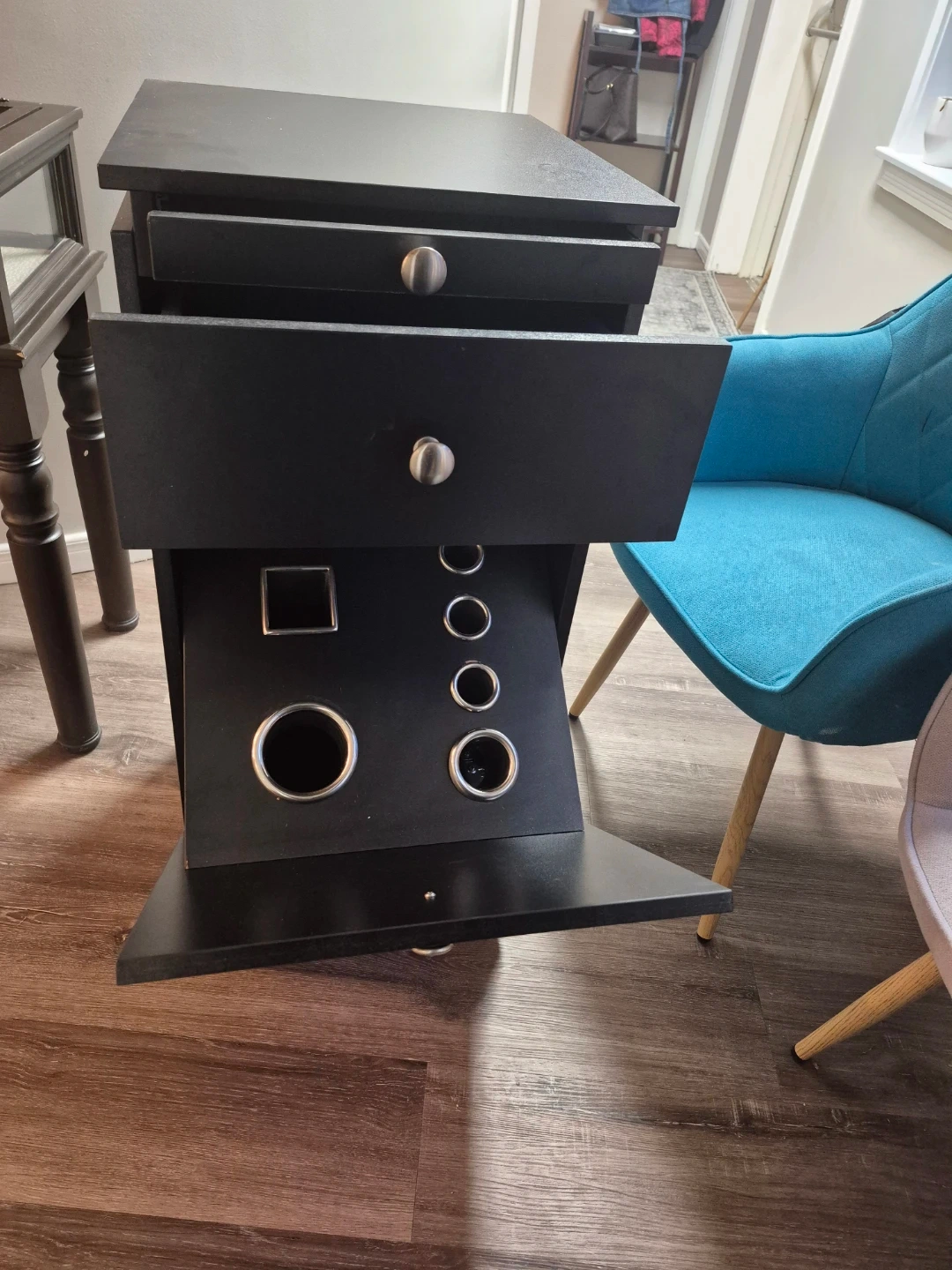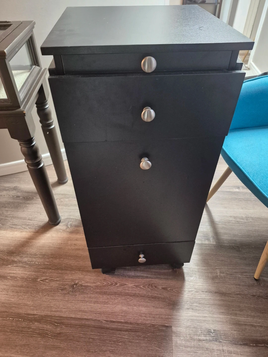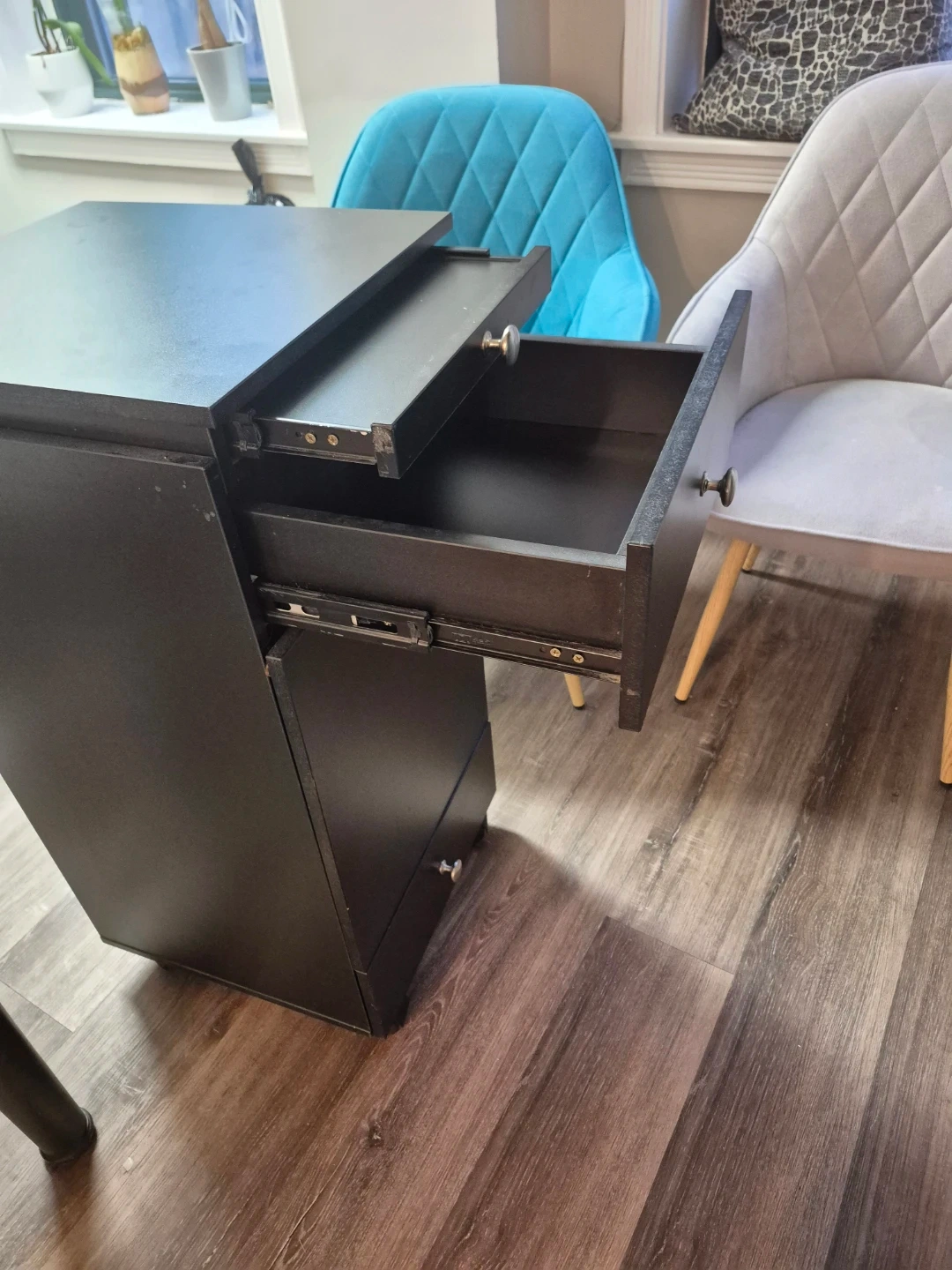 Professional solid wood rolling cabinets, ideal for hair salons, beauty studios, esthetic rooms, offices, or home organization. Finished in a sleek matte black, these units are durable, functional, and easy to move thanks to built-in wheels.