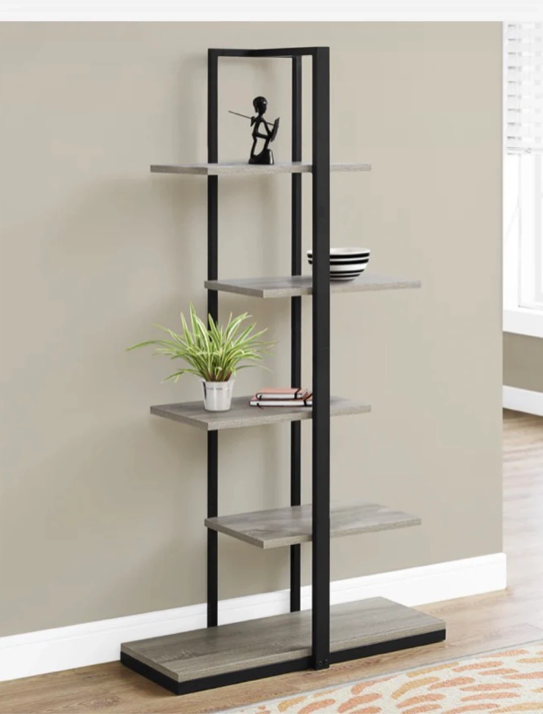 It has some signs of use, including a ring mark on one of the shelves, but is still sturdy and functional. Used for plants before.